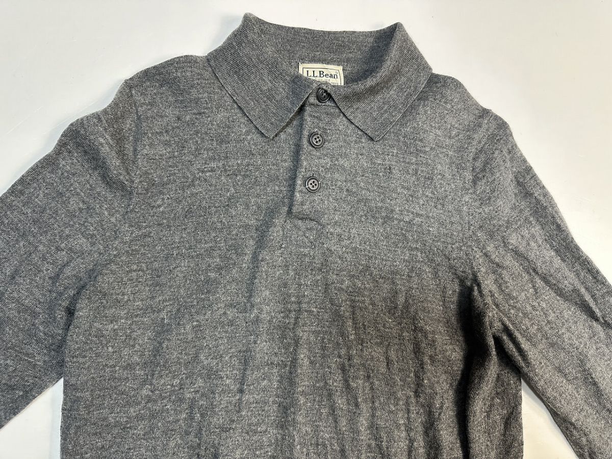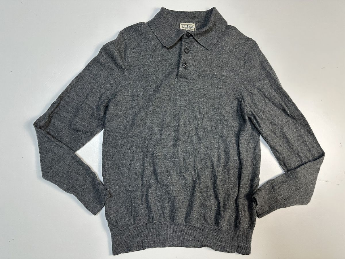 ●US USED L.L.Bean エルエルビーン 90s 90年代 ニット セーター ウール 襟 プルオーバー ハイゲージ グレー【M】