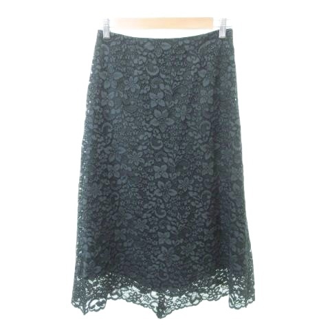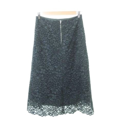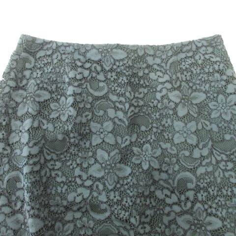 トゥモローランド 美品 スカート ひざ丈 フレア 総レース 花柄 フラワー 薄手 36 約Sサイズ 緑 グリーン ■YHS8 レディース
