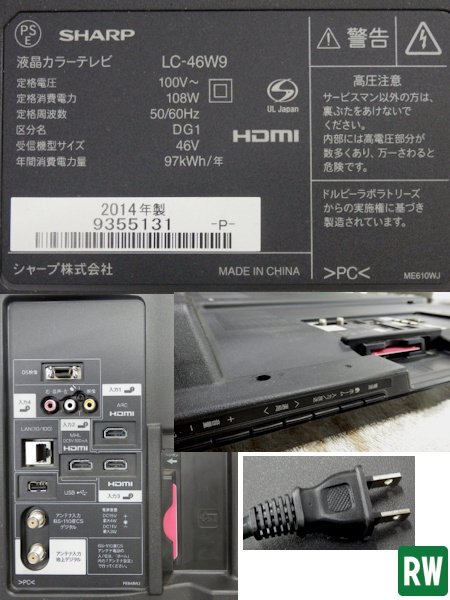 | 46V型 液晶カラーテレビ シャープ AQUOS/アクオス LC-46W9 2014年製 100V (リモコン/未使用品) |