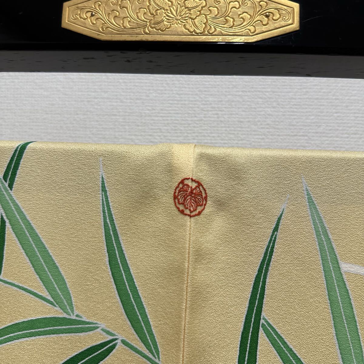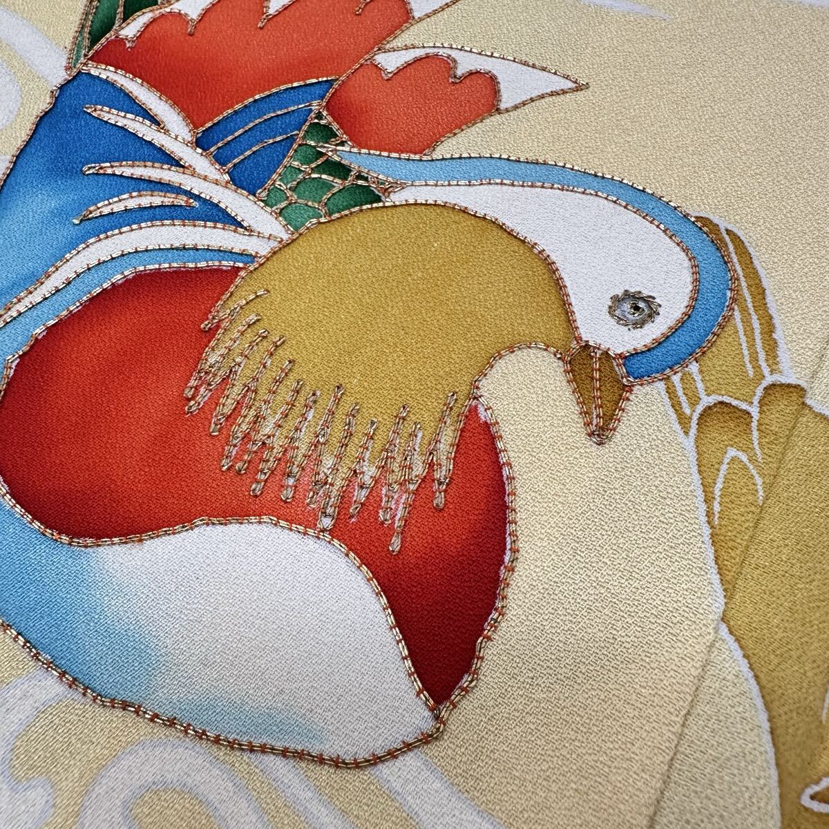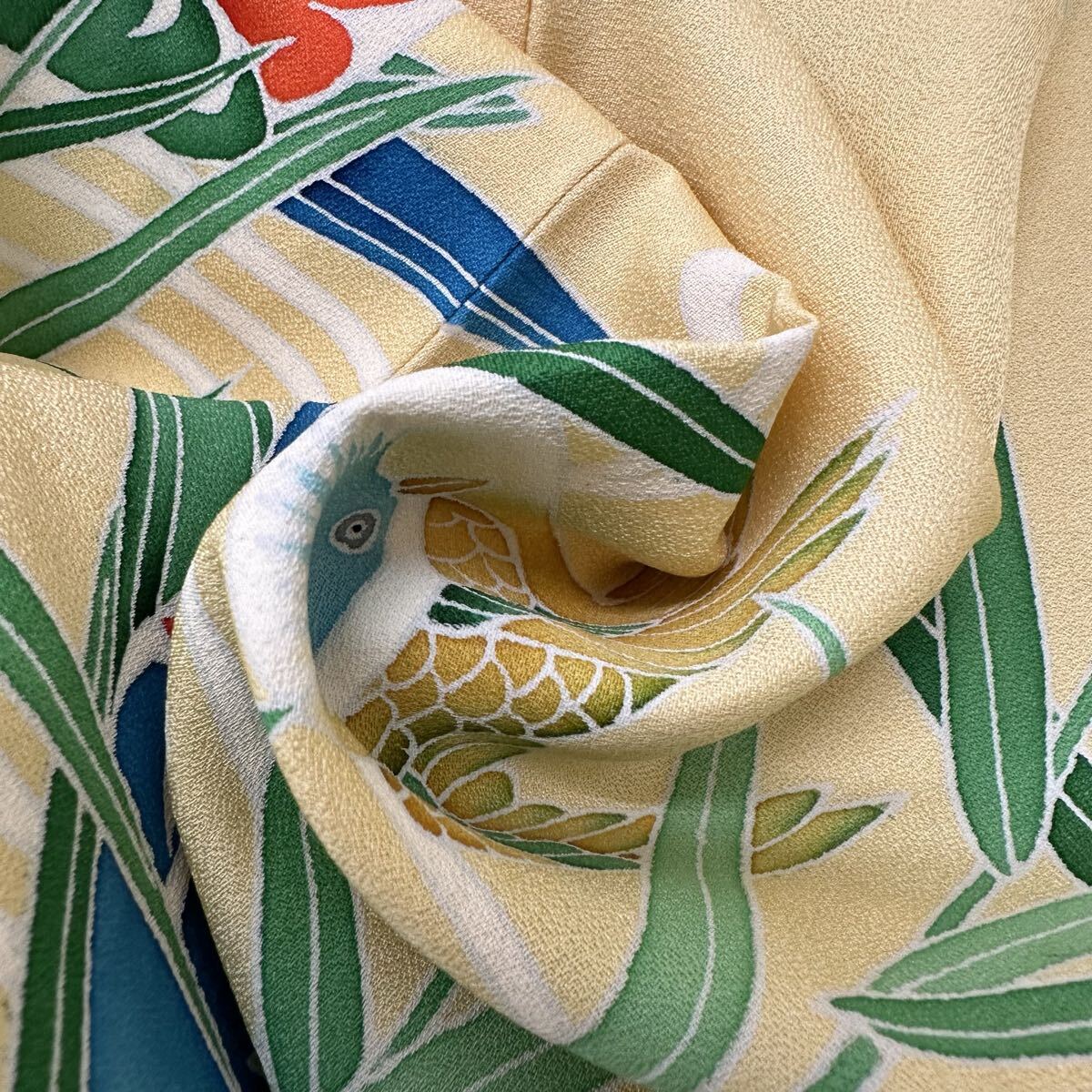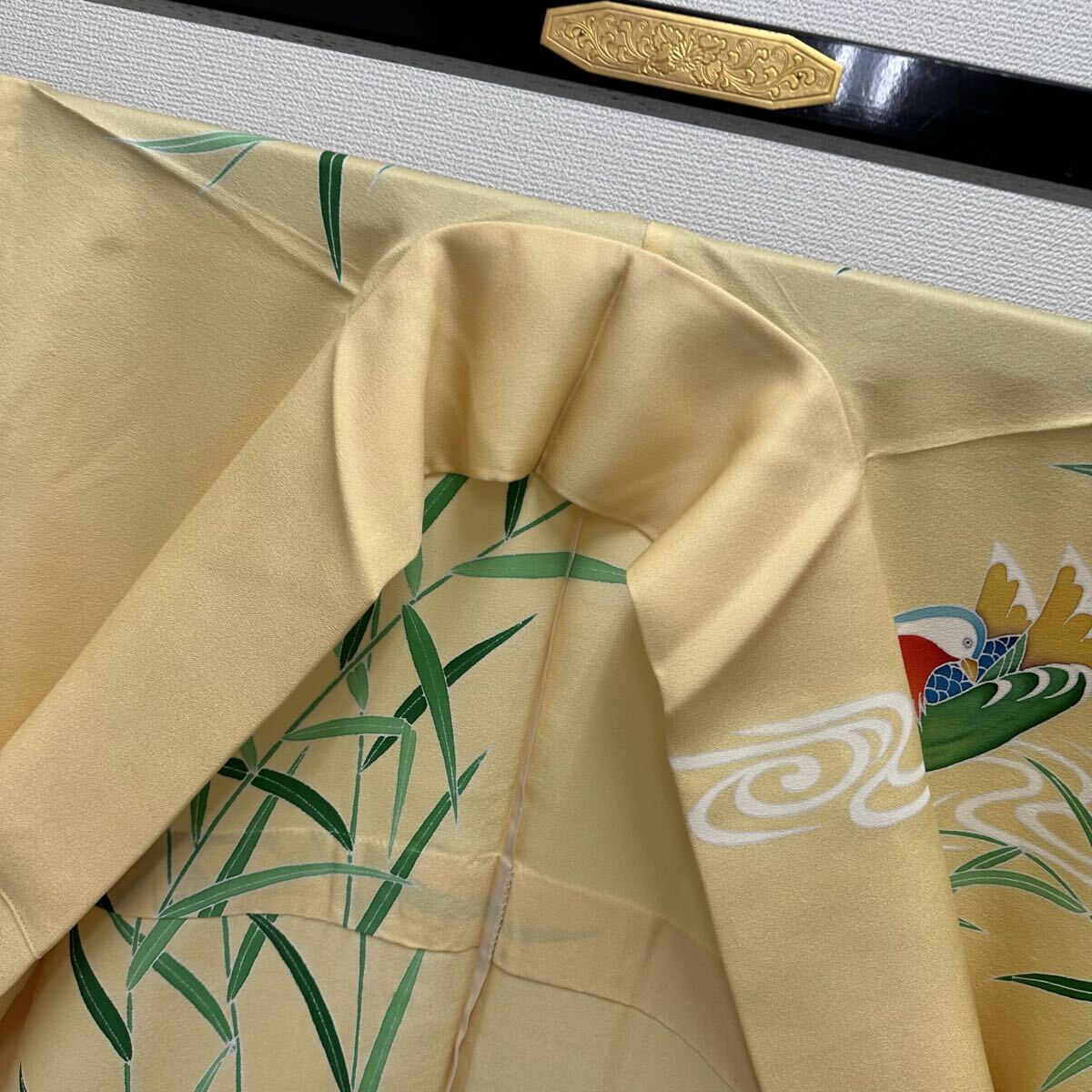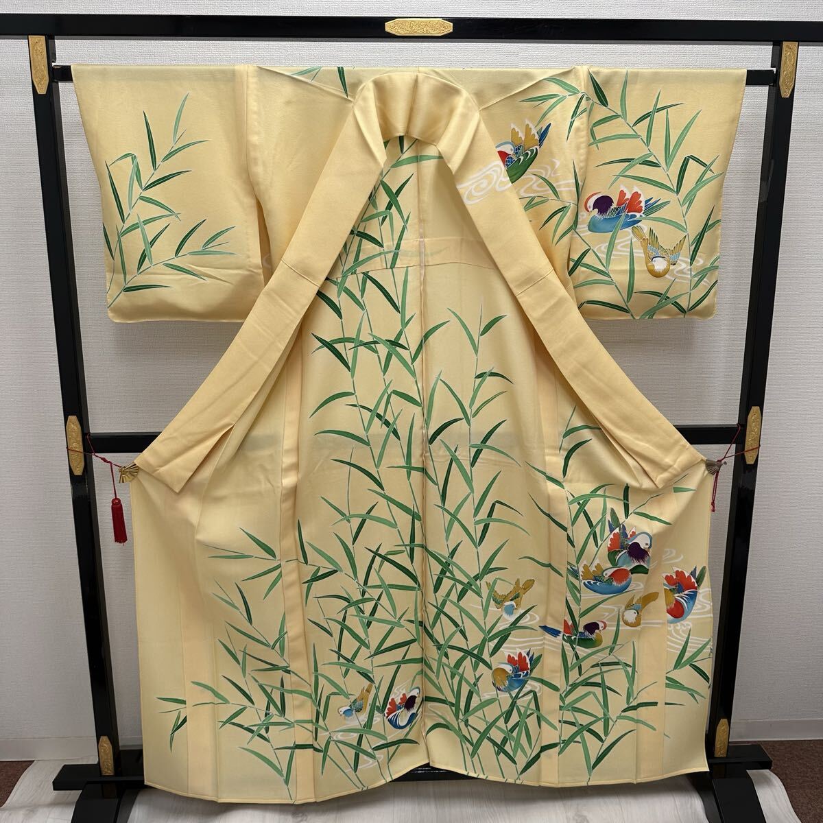 付下げ 単衣仕立て おしどり 可愛い黄色 着物 正絹 一つ紋 Q-196