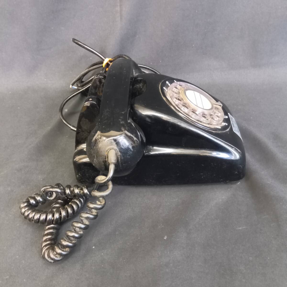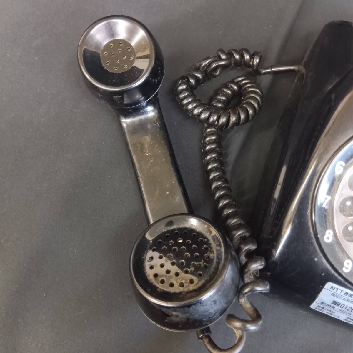 本商品は、かつてNTT(日本電信電話公社)が提供していた**「4号A自動式卓上電話機」**、通称**「黒電話」**です。1950年代から長きにわたり使用された、昭和の象徴的な家電の一つ。丸みを帯びた形状から「ダルマ」とも呼ばれた、レトロなデザインが特徴です。素材には硬質な**ベークライト**(または後期の樹脂)が使われており、ずっしりとした重みと光沢があります。停電時にも通話が可能という高い信頼性を持っていました。画像の通り、本体はモジュラープラグ(NMJ-2)に接続できるよう改造されているようですが、現在の電話回線(特に光回線やIP電話)ではそのまま使用できない場合や、動作確認のための環境が特殊である場合があります。アンティーク、昭和レトロな雰囲気を楽しむ**インテリア**や**店舗のディスプレイ**として最適な逸品です。