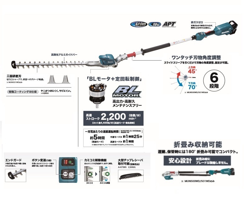 マキタ製の充電式ポールヘッジトリマのMUN501WDWF(2グリップ仕様)です。