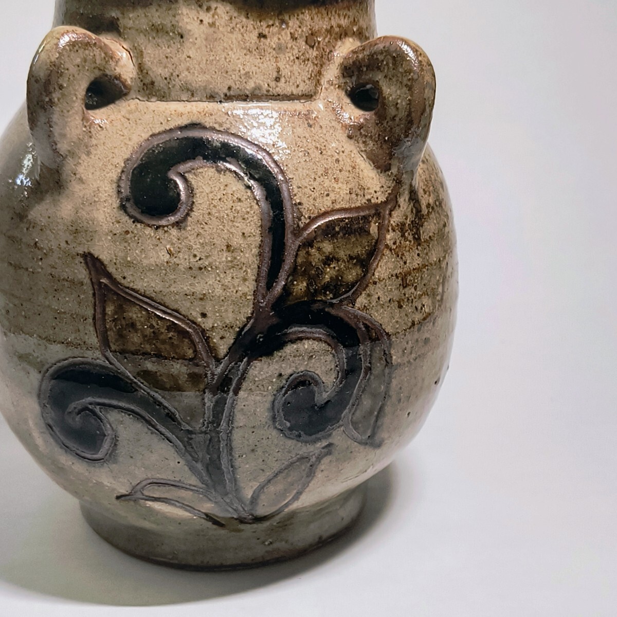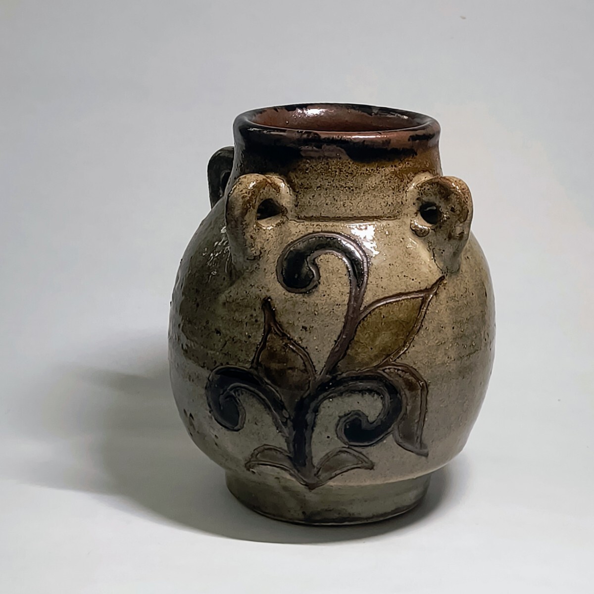 古い時代のアンダガーミです。次郎さんか敏男さんか次郎窯辺りだと思います。クローズアップされた唐草模様が面白いですね。よく焼かれた品です。