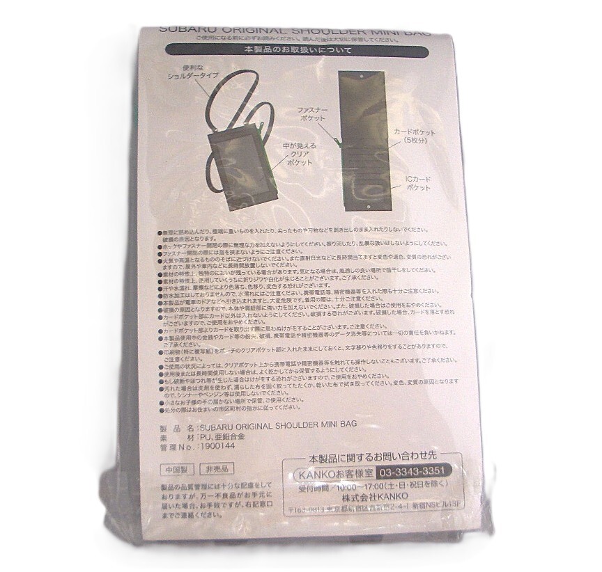 ショルダーミニバッグ スバルオリジナル 緑ファスナーポケット付き 未使用品