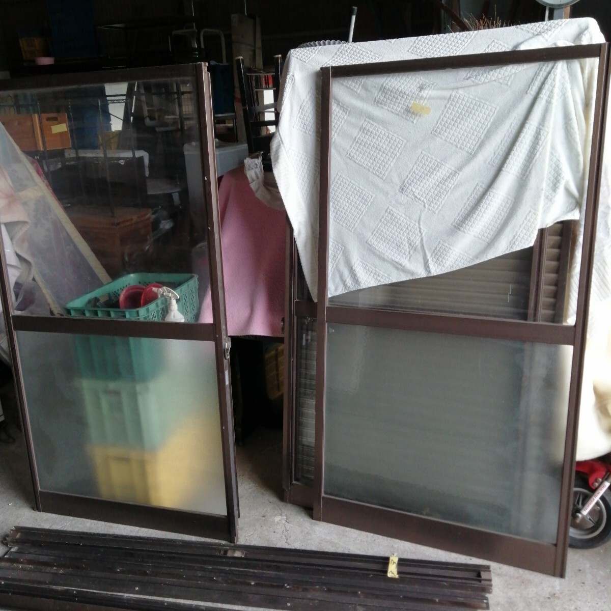 3 佐賀発 アルミサッシ YKK 引き違いドア 2枚組 枠付き A-H-7 ガレージ リフォーム DIY コンテナハウス リノベ 大工 増築 リノベーション