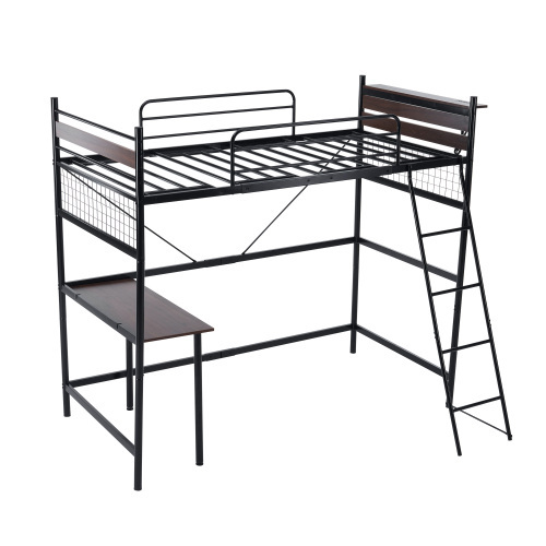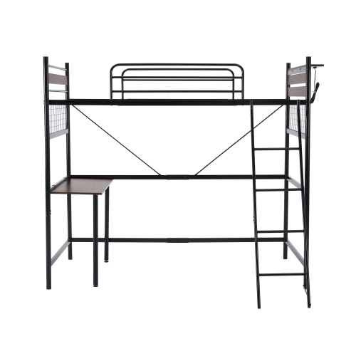 【ブラック】システムベット 3WAYロフトベッド シングル 収納付き デスク付き 北欧風 スチール 耐震 コンセント付き メッシュパネル付き