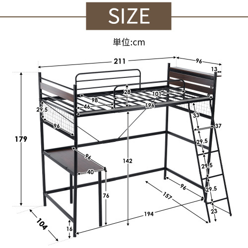 • 【ロフトベッドのメリットとは?】寒い季節に暖かく過ごせますよ。暖かい空気は部屋の上のほうに溜まるので、低い位置にベッドを置いたときよりもロフトのほうが快適に過ごせます。狭い部屋にもぴったりです。限られたスペースを最大限に活用し、お部屋をすっきりして広く見せられます。スタンダードタイプ/ミドルタイプ/ロフトタイプ三つ高度の選択、お部屋に合わせて、自分の好みに調整いたします。
