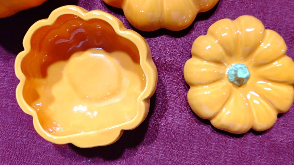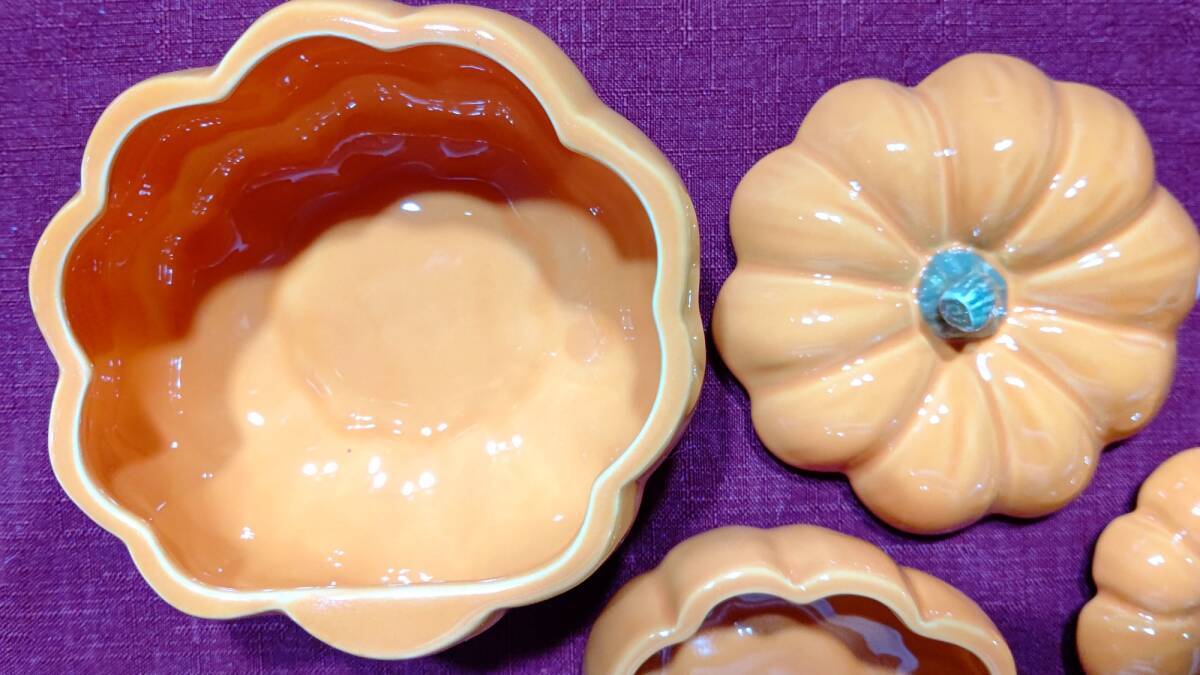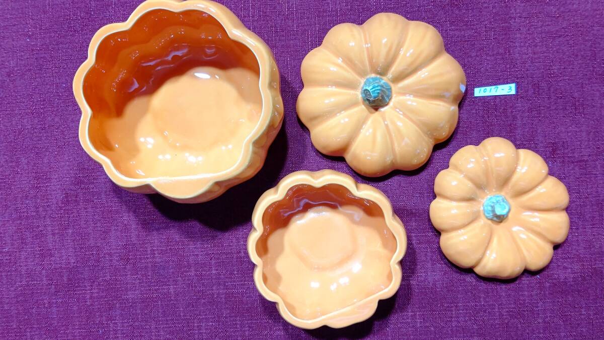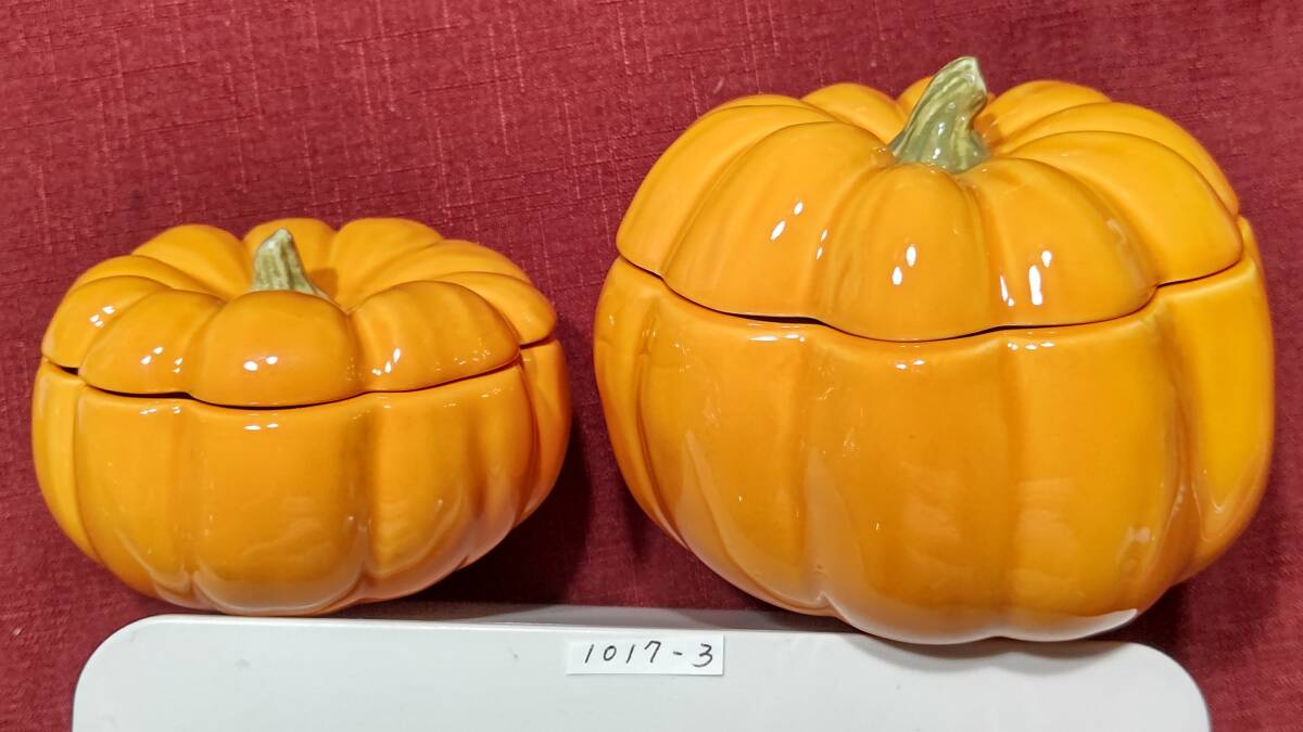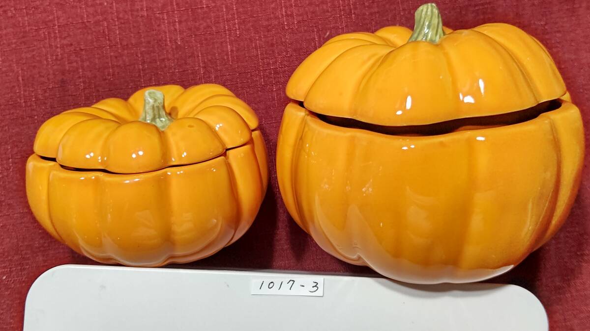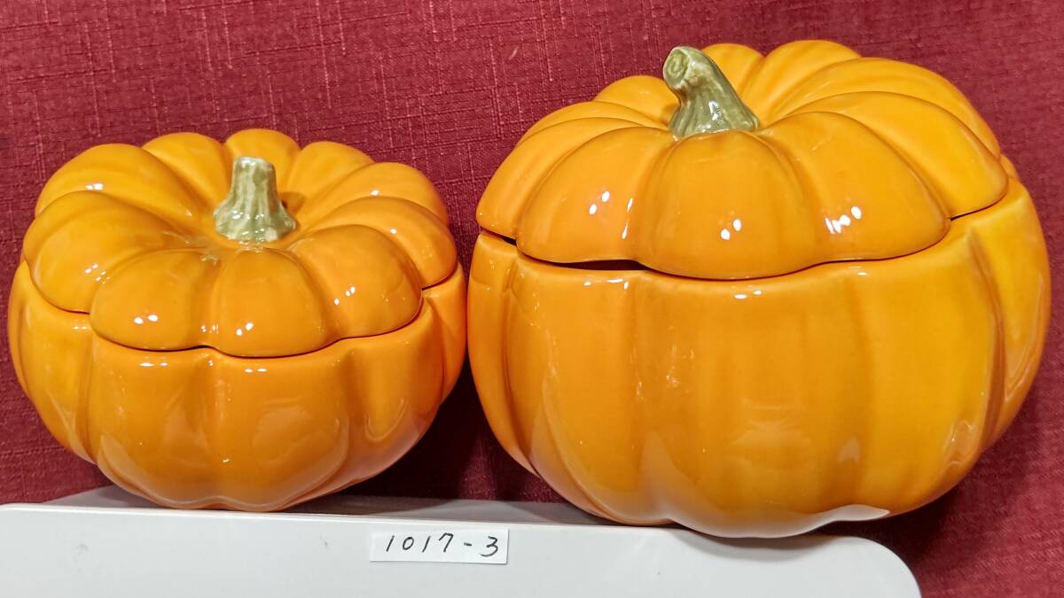 1017-3 Villeroy&Boch ビレロイ&ボッホ ハロウィン カボチャ型蓋つき容器 2個セット(11×12×9㎝307g、10×9.5×6.5㎝208g)