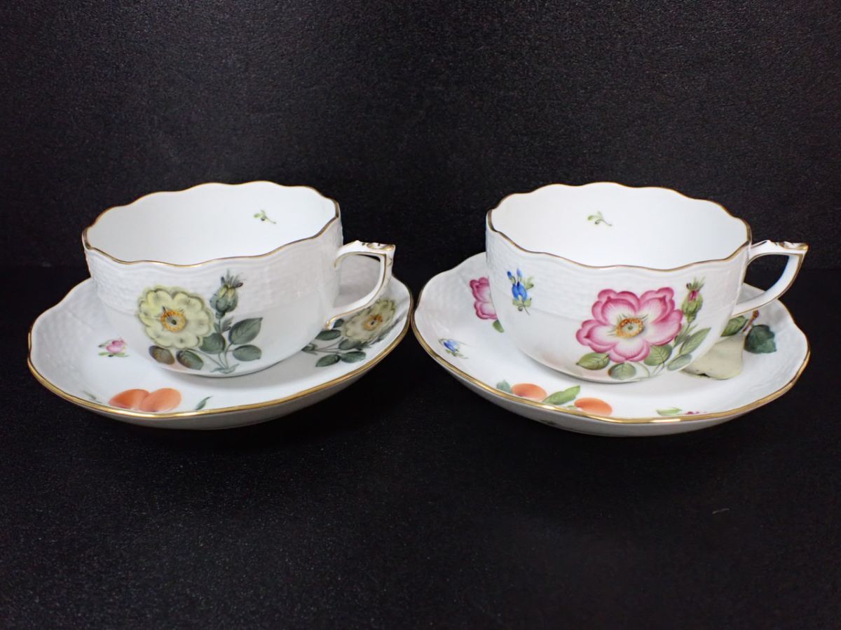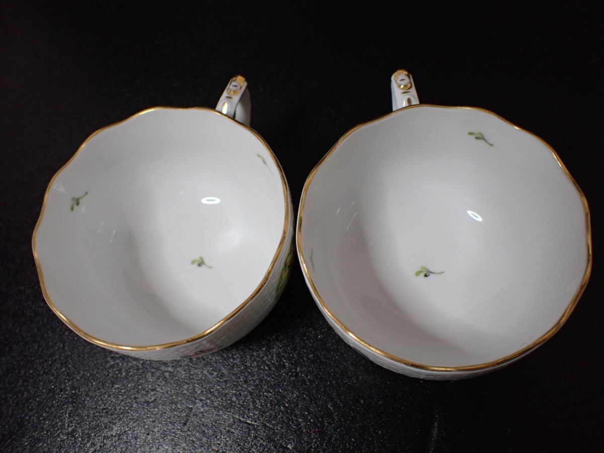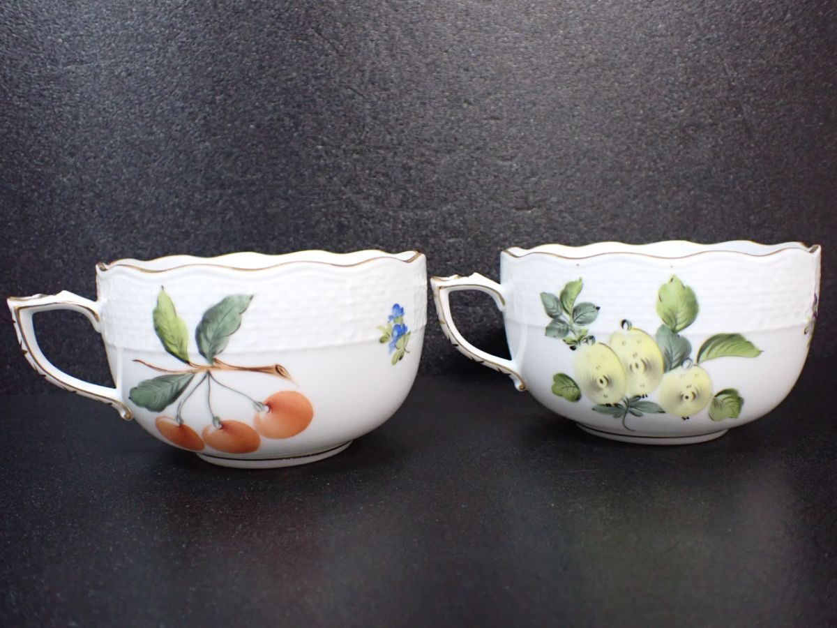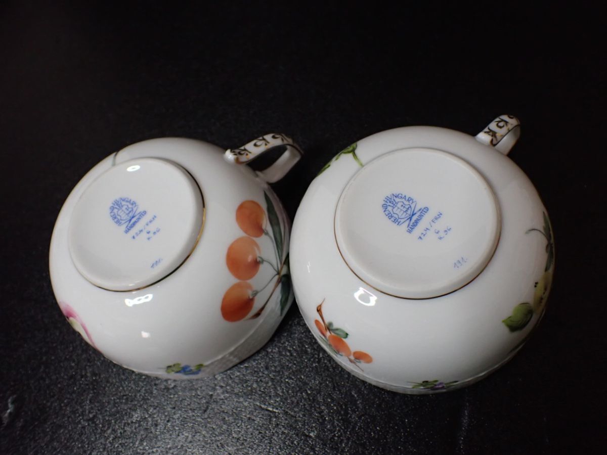 M531/8D〇HEREND ヘレンド カップ&ソーサー 2客 フラワー フルーツ きのこ 中古品〇