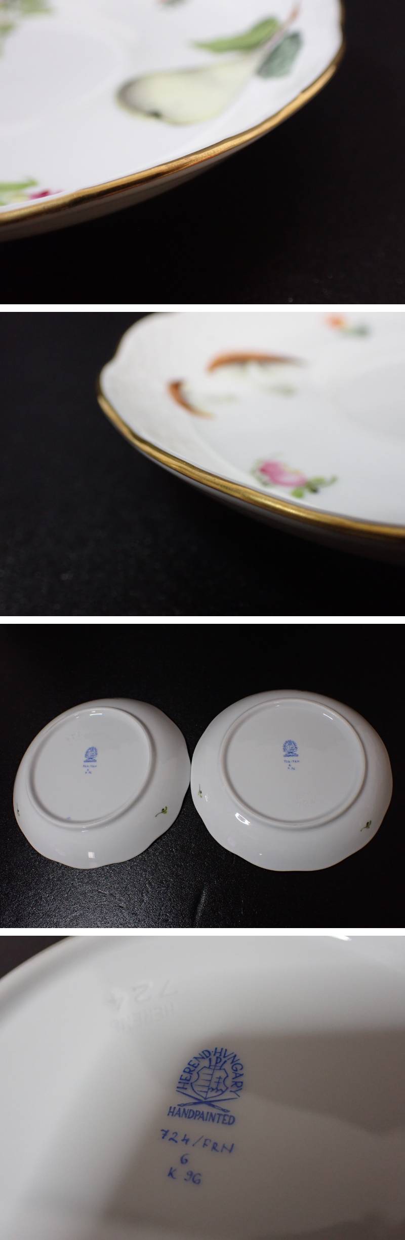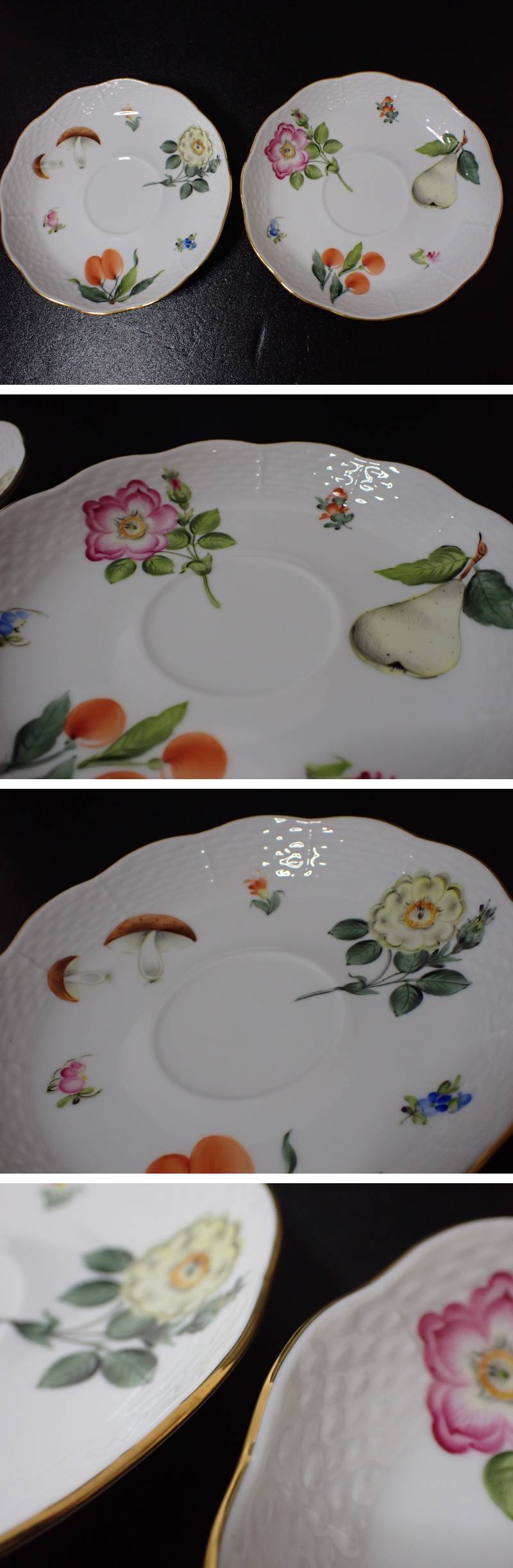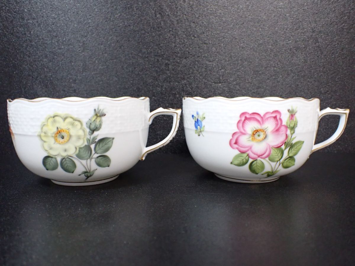 M531/8D〇HEREND ヘレンド カップ&ソーサー 2客 フラワー フルーツ きのこ 中古品〇