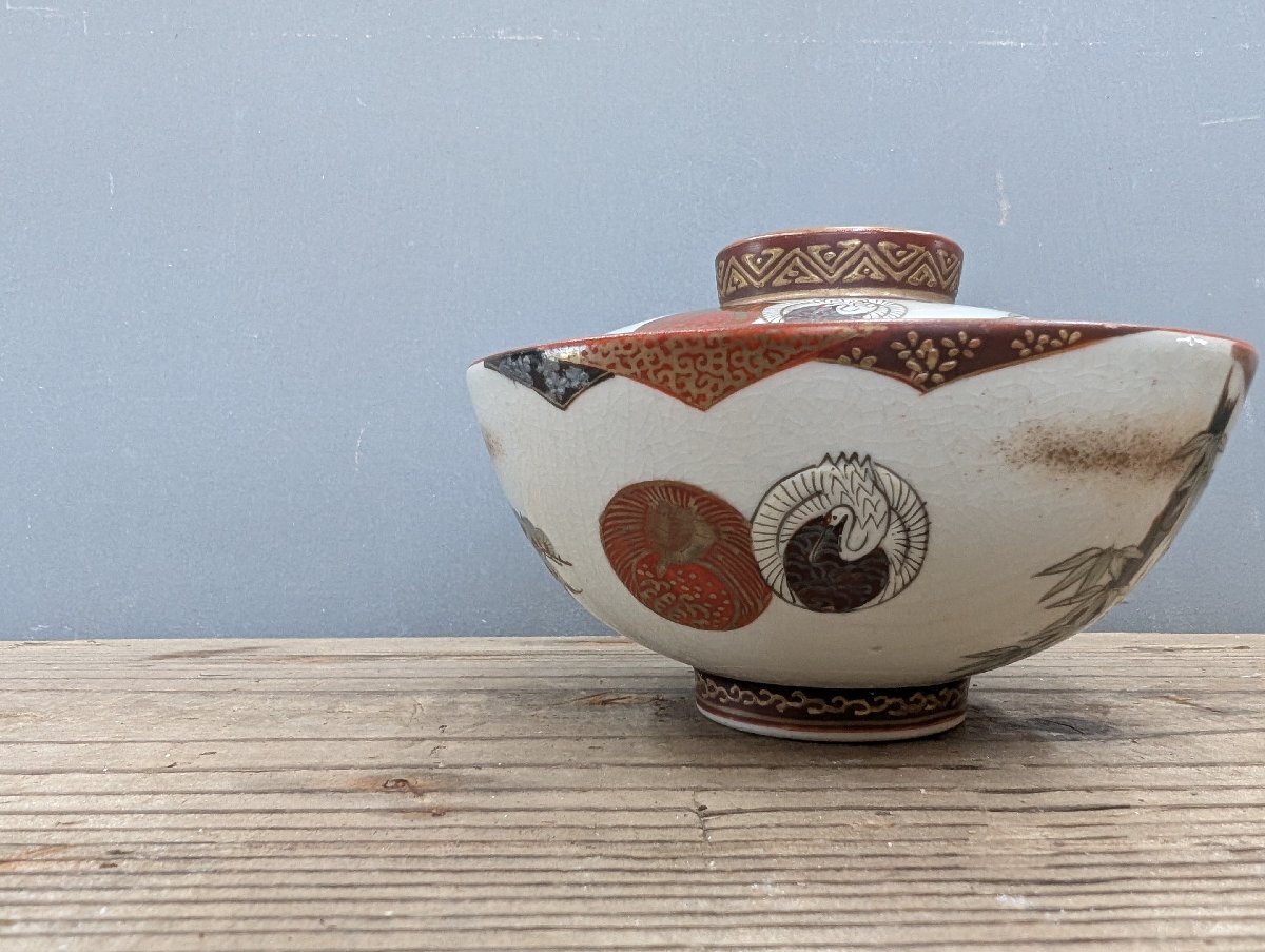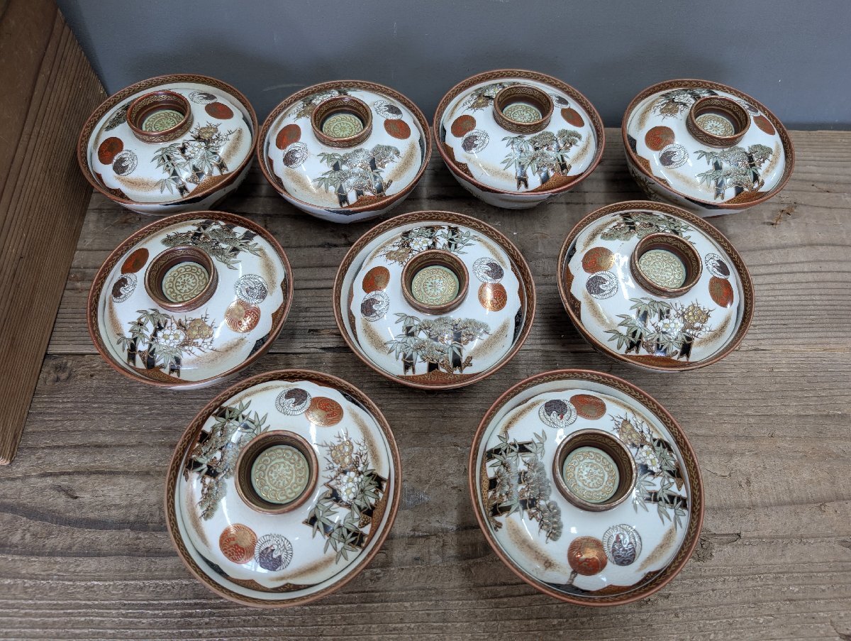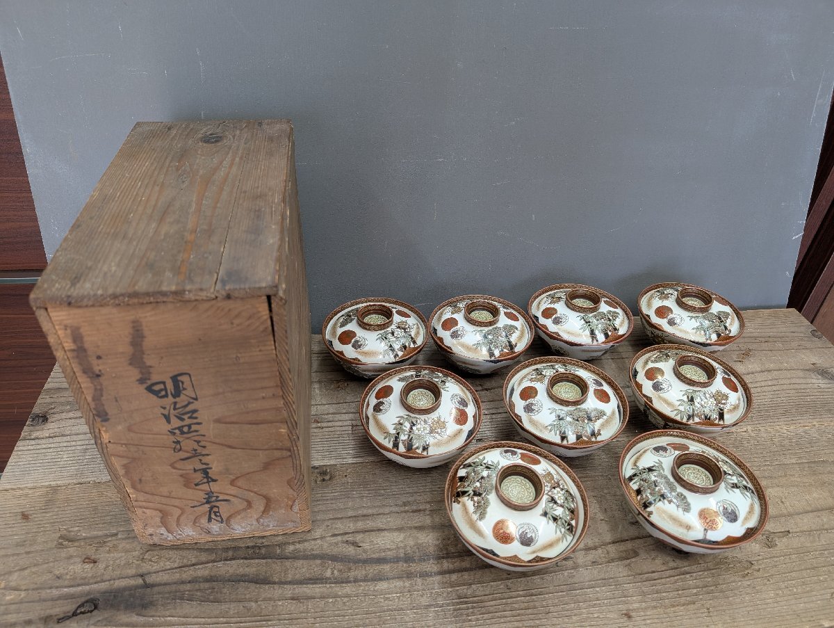 九谷焼 丼 どんぶり 蓋つき茶碗 アンティーク 時代物 骨董 明治 9客