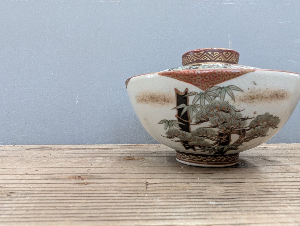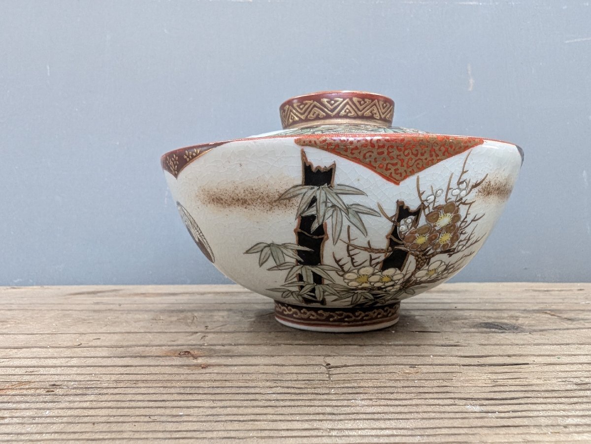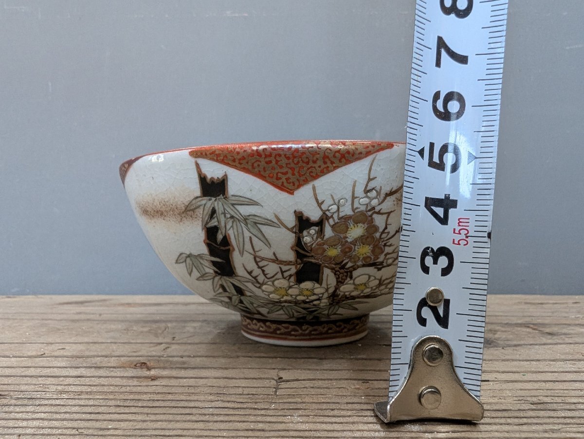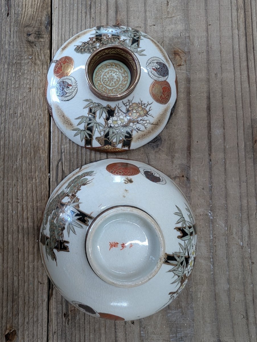 九谷焼 丼 どんぶり 蓋つき茶碗 アンティーク 時代物 骨董 明治 9客