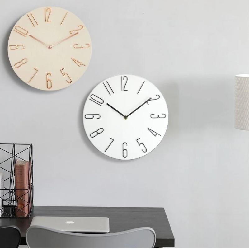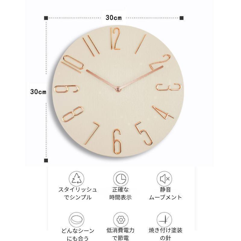 北欧風インテリアにぴったりな直径約30cmの壁掛け時計。極簡白・木目ローズゴールドの2カラー展開で、スタイリッシュ×機能性も充実!