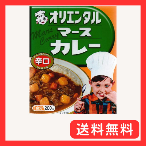 「オリエンタル洋行 オリエンタル マースカレーレトルト版辛口 200g×5個」▼4901276120460▼(商品説明)「オリエンタル洋行 オリエンタル マースカレーレトルト版辛口 200g×5個」▼4901280000000▼(商品説明)-/200グラム (x 5)/-・パッケージ個数:5・内容量:200g×5個・原材料:野菜(じゃがいも、玉ねぎ、にんじん)、牛肉、小麦粉・商品サイズ(高さ×奥行×幅):130mm×105mm×161mm昭和37年発売のロングセラー「マースカレー」のレトルト版辛口タイプです。 オリエンタル独自のマースチャツネとともにじっくり煮込み、どこか懐かしい味わいのマースカレーに、ホットなブレンドスパイスを加え辛口に仕上げました。 マンゴ、リンゴ、レーズン、本場のスパイス等をブレンドしたマースチャツネの酸味・甘みにホットな辛味が加わった辛口カレーをお楽しみください。