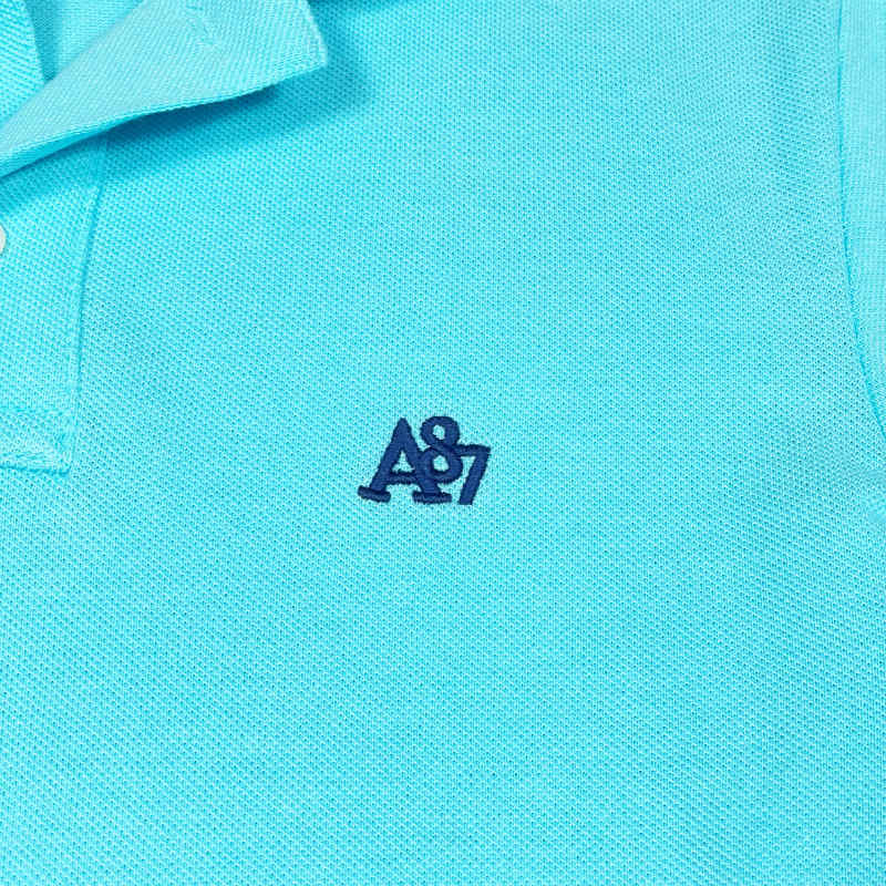 エアロポステールの定番ポロシャツ。通気性のいい鹿の子(ピケ)素材と左胸にワンポイントのA87のロゴ刺繍。