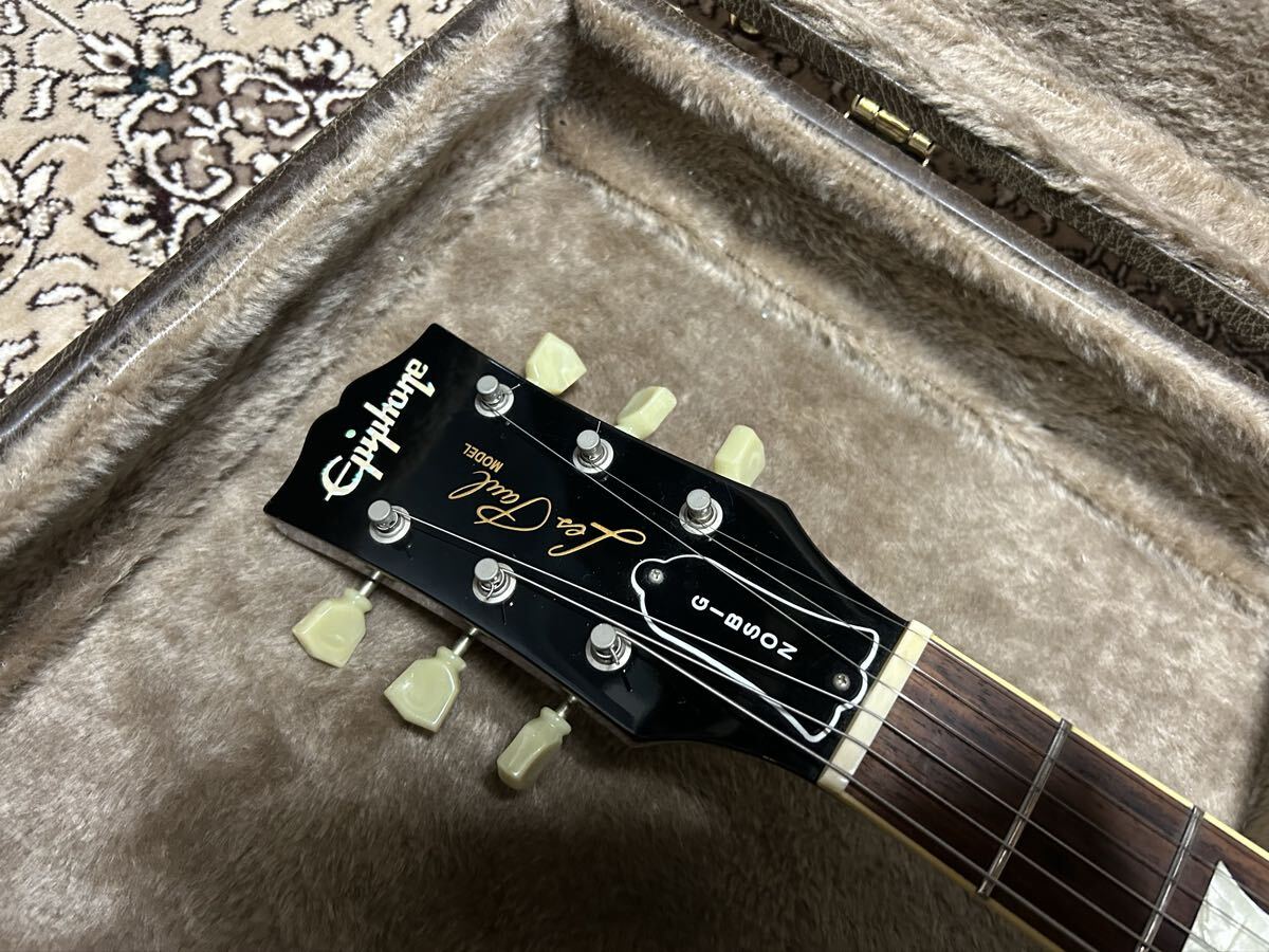 2001年・フジゲン製・Epiphone・ Japan・ LesPaul ・日本製・高級モデル・トラ杢・ディープジョイント・美品・ビンテージ・激安。