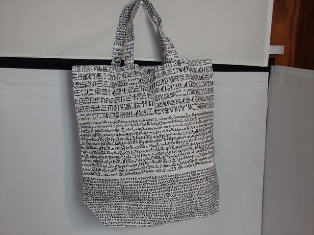 エジプト考古学史上最大の発見と言われているロゼッタストーンです。そのロゼッタストーンをモチーフにした、エコバッグです。