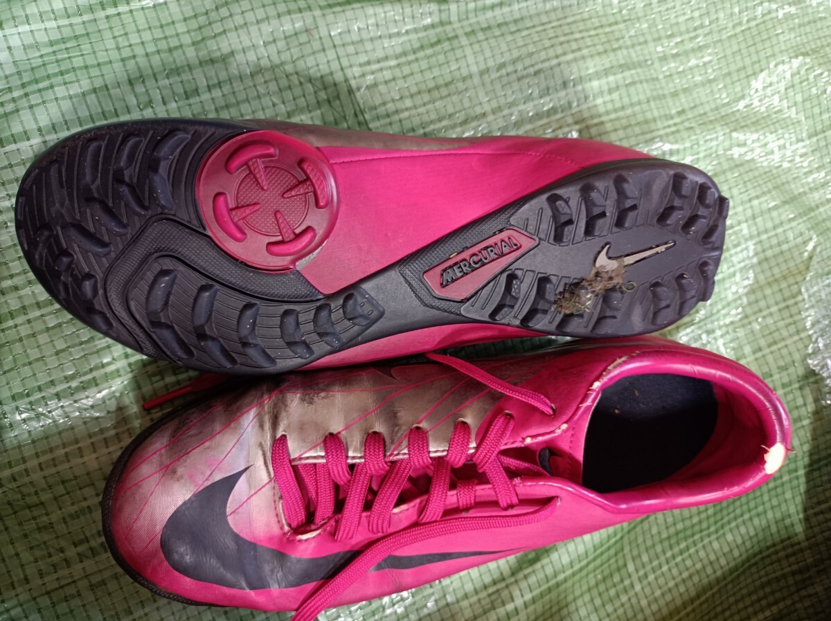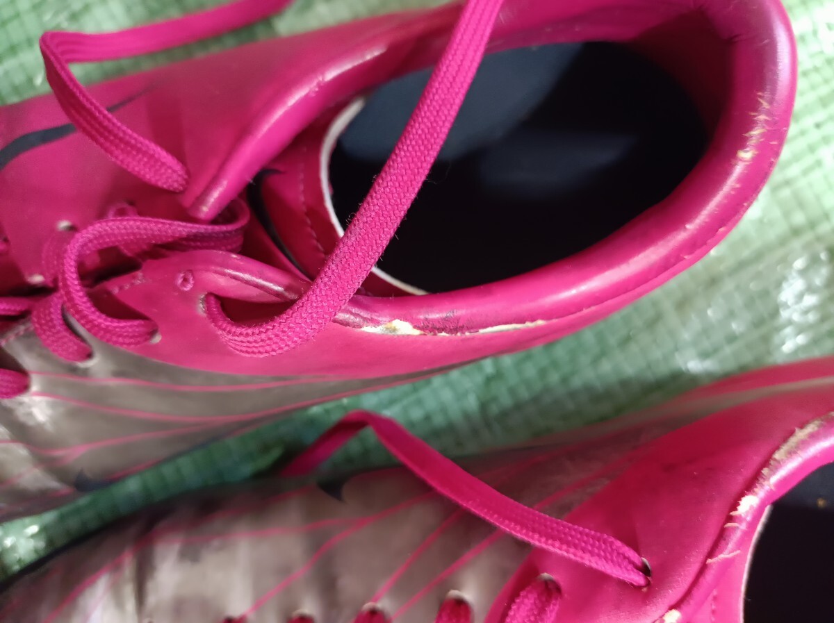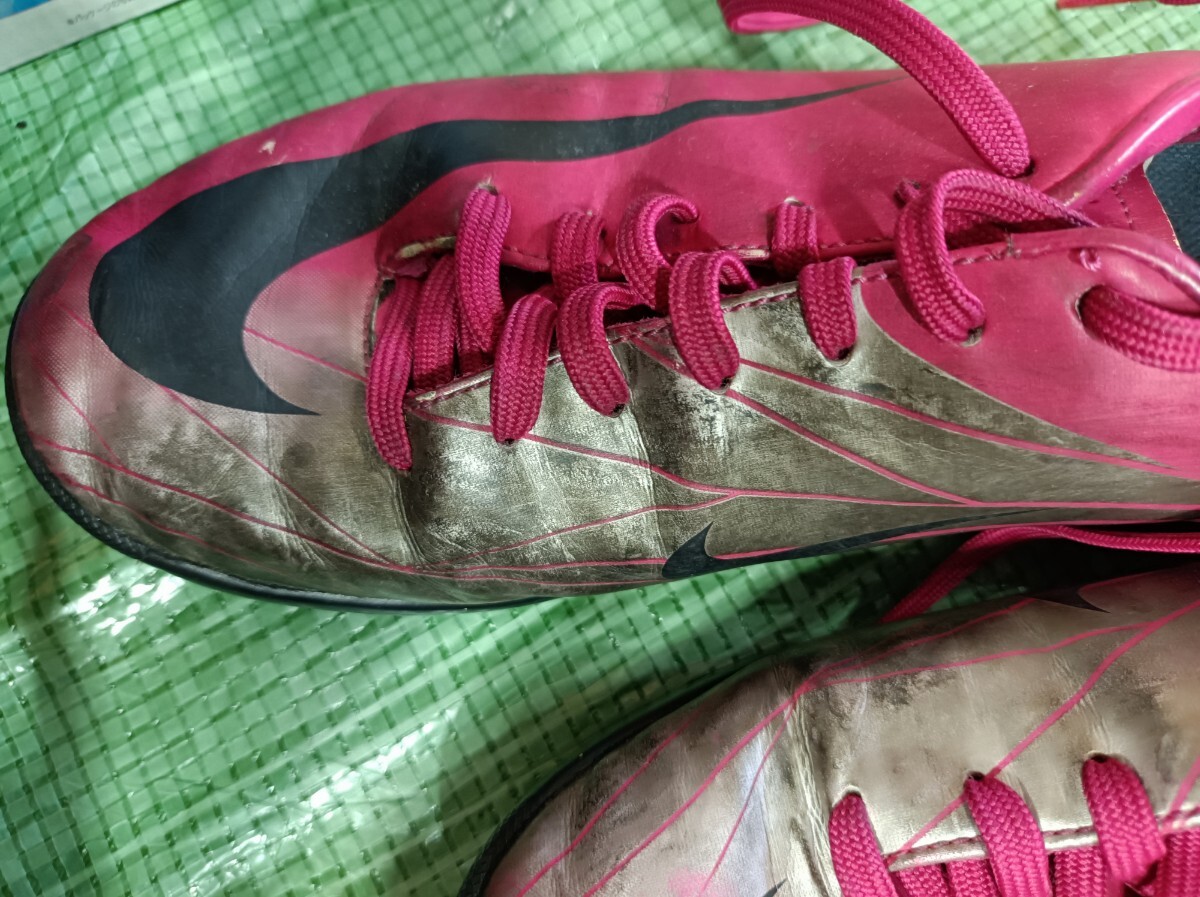 ピンクのNikeナイキ Mercurial、人工芝用、使用感ありです。サイズは25センチになります。