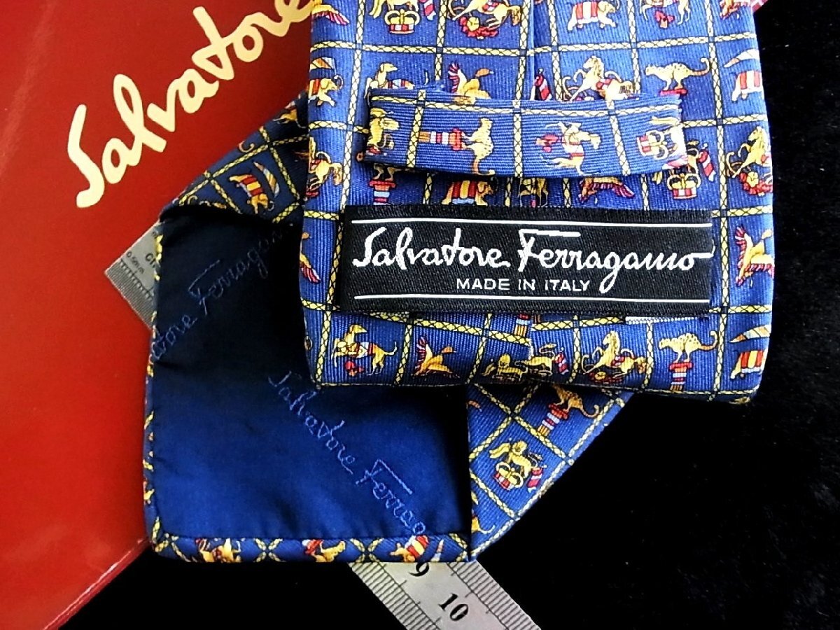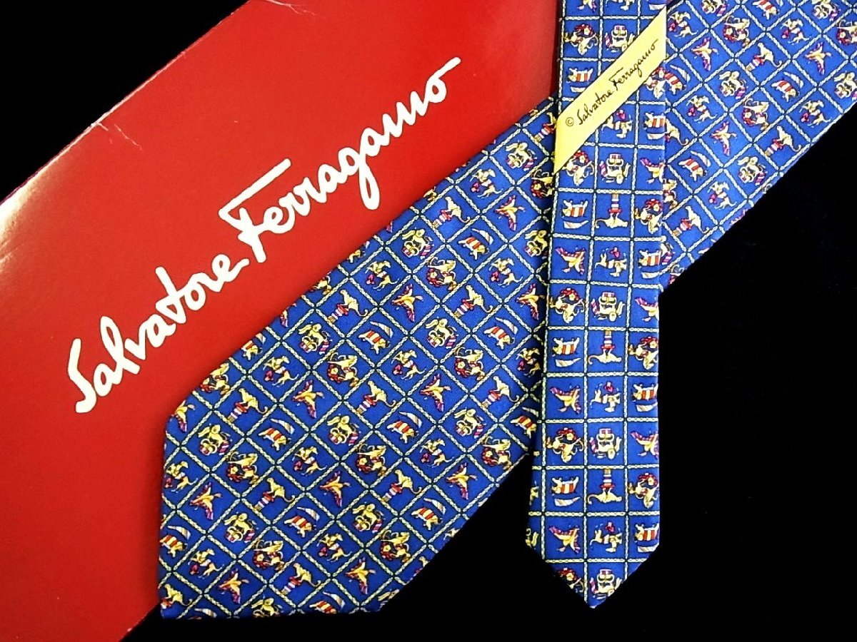 ★今週の特売★7169★高級ブランド【キャラ柄】★フェラガモ【ゾウ ウマ ピューマ 鳥 動物 柄】ネクタイ★