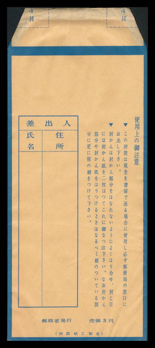●未使用|現金書留封筒 阿部紙工製造 郵政省発行 売価3円 定形外発送※