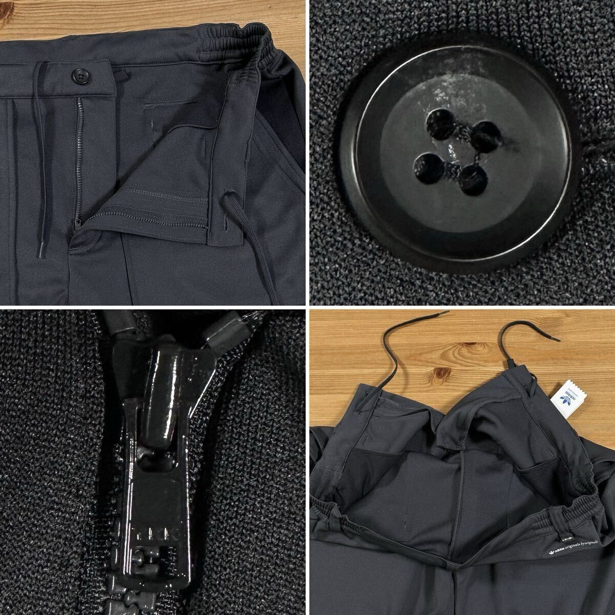 ☆ジャージ素材を使用した伸縮性のある快適な穿き心地。ウエストはリブ、ドローコードを配置したサイズ調節が可能なイージーパンツ仕様◎更に多数のジップポケットやフラップポケット、ジップの装飾を配したギミック、ボンテージ風のデザインが目を惹く一本。アディダスらしい3ストライプスのディテールもポイントです。