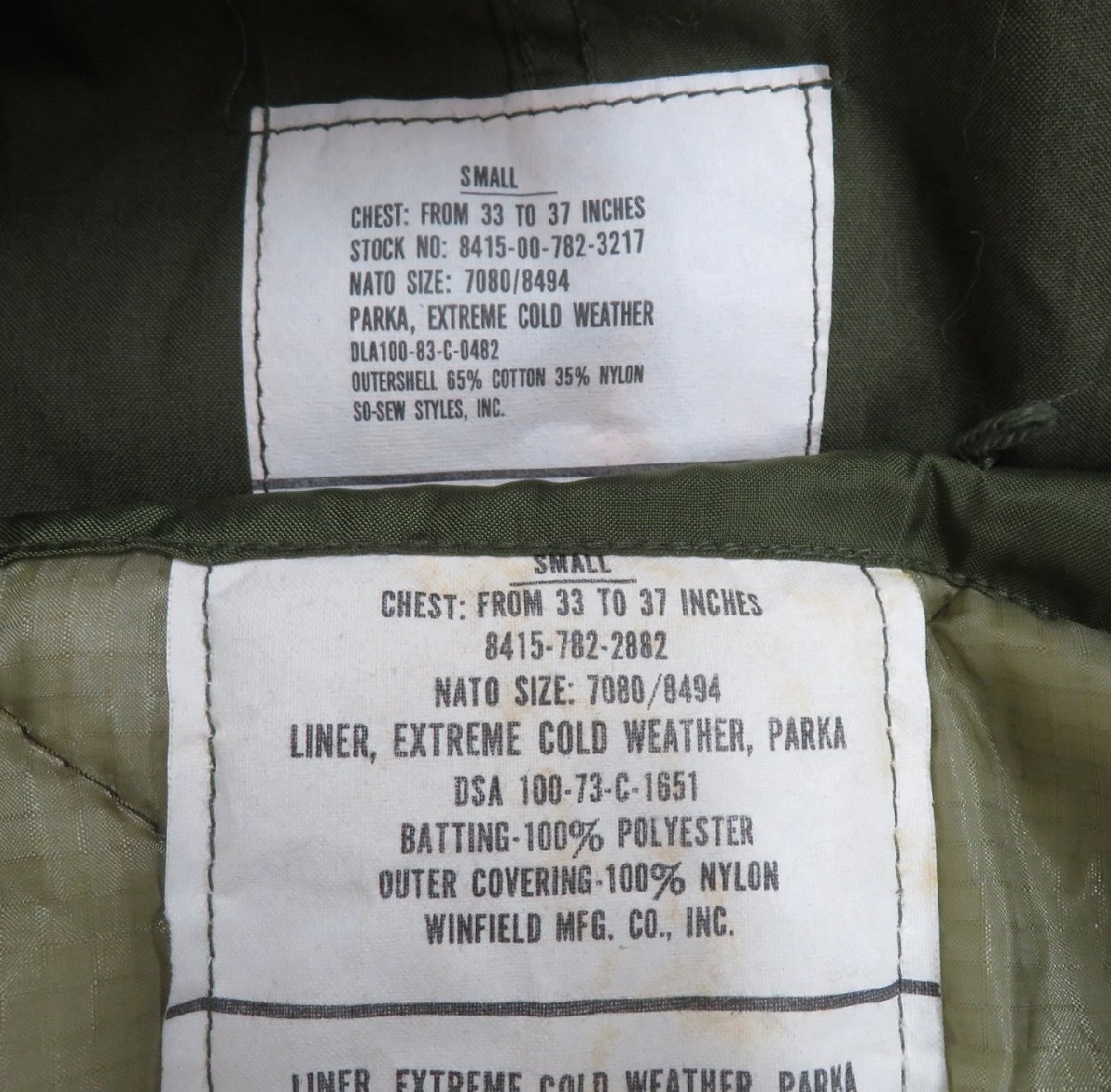 | アイテム名 | 米軍 SO-SEW社 83年会計 M-65 フィッシュテールパーカー M-51フード フルセット |