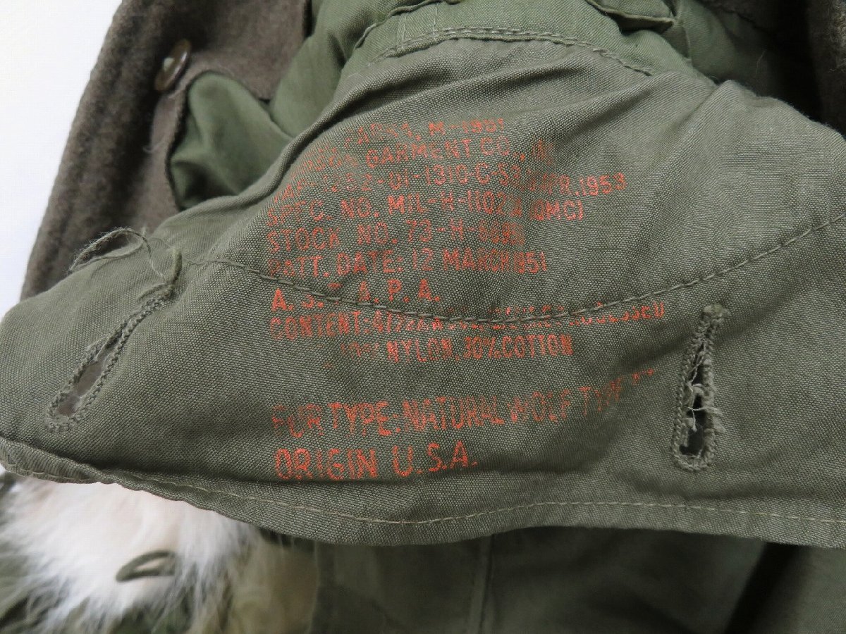 コンディションランク:B 状態はユーズドのお品物ではございますが、美品でございます。 フードとライナーの取外しが可能です。 ジッパーはGENERALです。 スレや薄汚れはございますが、お品物の年代を考慮致しますと、 全体的には綺麗なお品物です。 ・ライナー73年会計 ・フードはM-1951、53年会計 これからもご使用頂けるお品物です。是非ご検討下さいませ。 ・ユーズドのお品物でございます為、商品説明に記載の無いスレや傷、 型崩れ、シワ、汚れがある場合がございます。 新品未使用品ではございません場合、ユーズドをご了承いただけますお客様の ご入札をお願い申し上げます。 ・香水、柔軟剤、ユーズド特有のにおいにつきましては、商品説明に記載致しておりません。 ・写真撮影に使用するハンガーや備品は附属いたしません。 タグや箱などの付属品は、写真に掲載が無い場合、附属いたしませんのでご了承ください。 ▼下記のコンディションランク表を目安としてご参考ください▼ ![]() |
