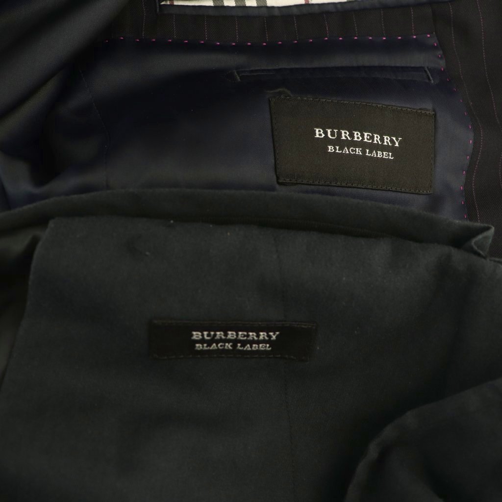 バーバリーブラックレーベル BURBERRY BLACK LABEL Super 110’s TASMANIA WOOL セットアップ スーツ テーラードジャケット パンツ ストライプ 42 ネイビー /HK