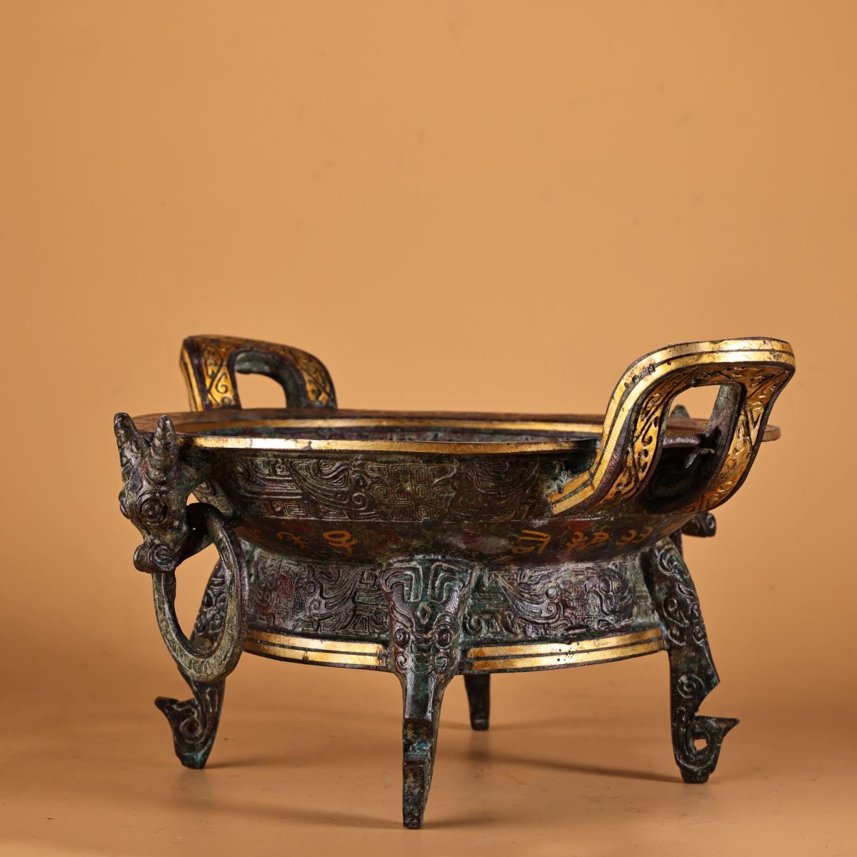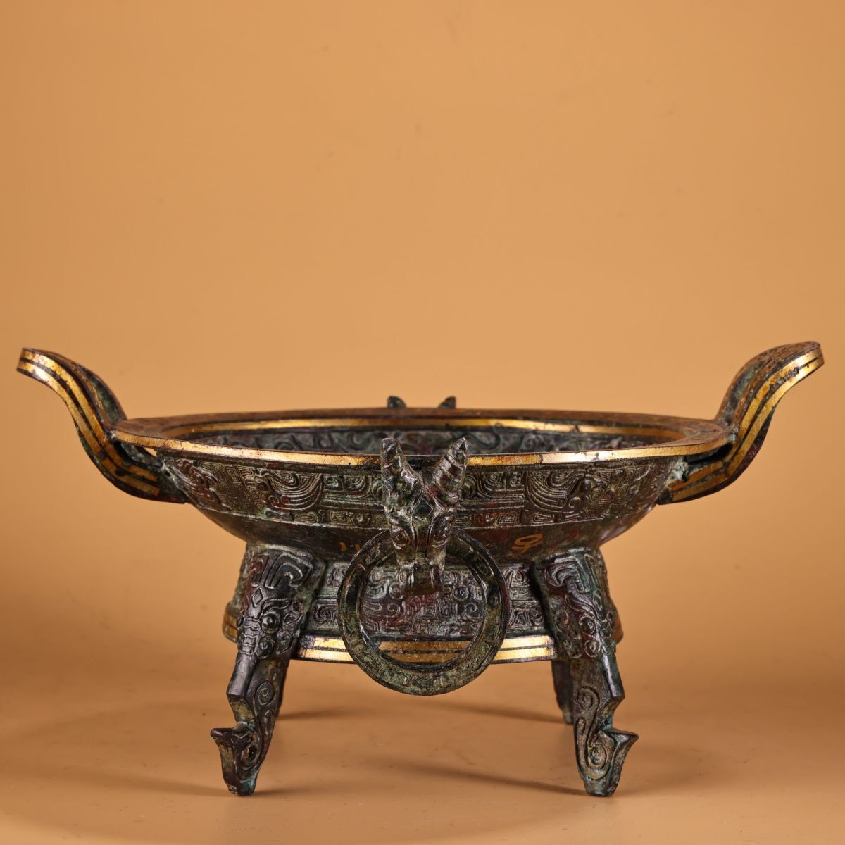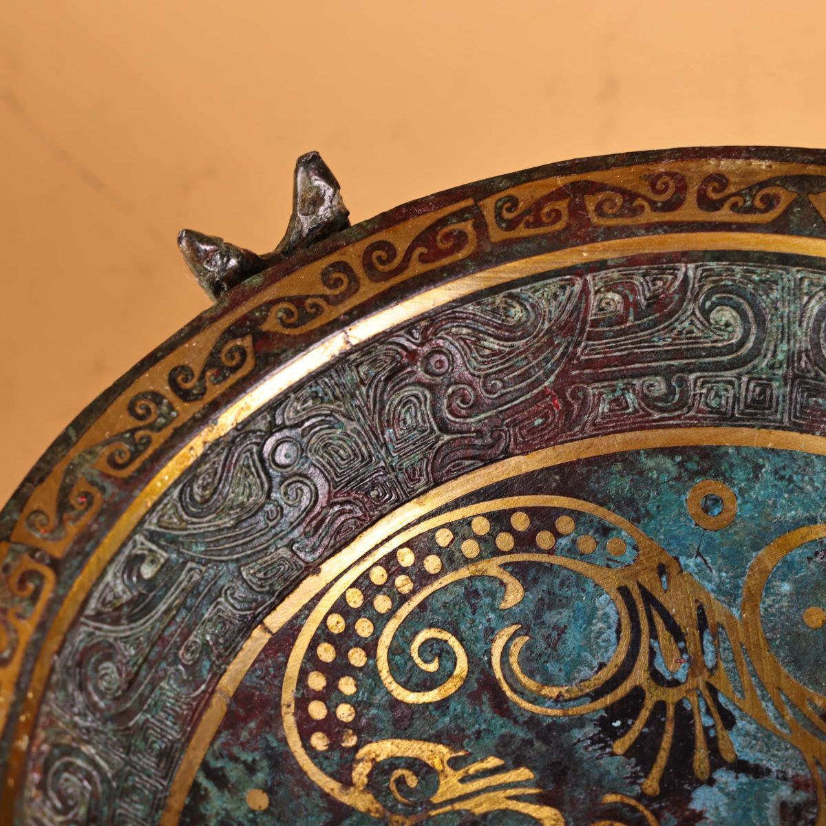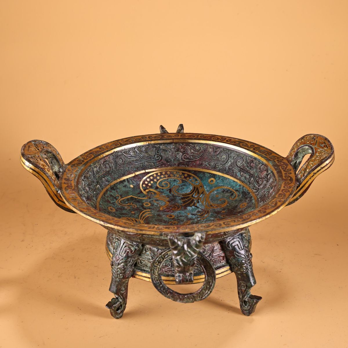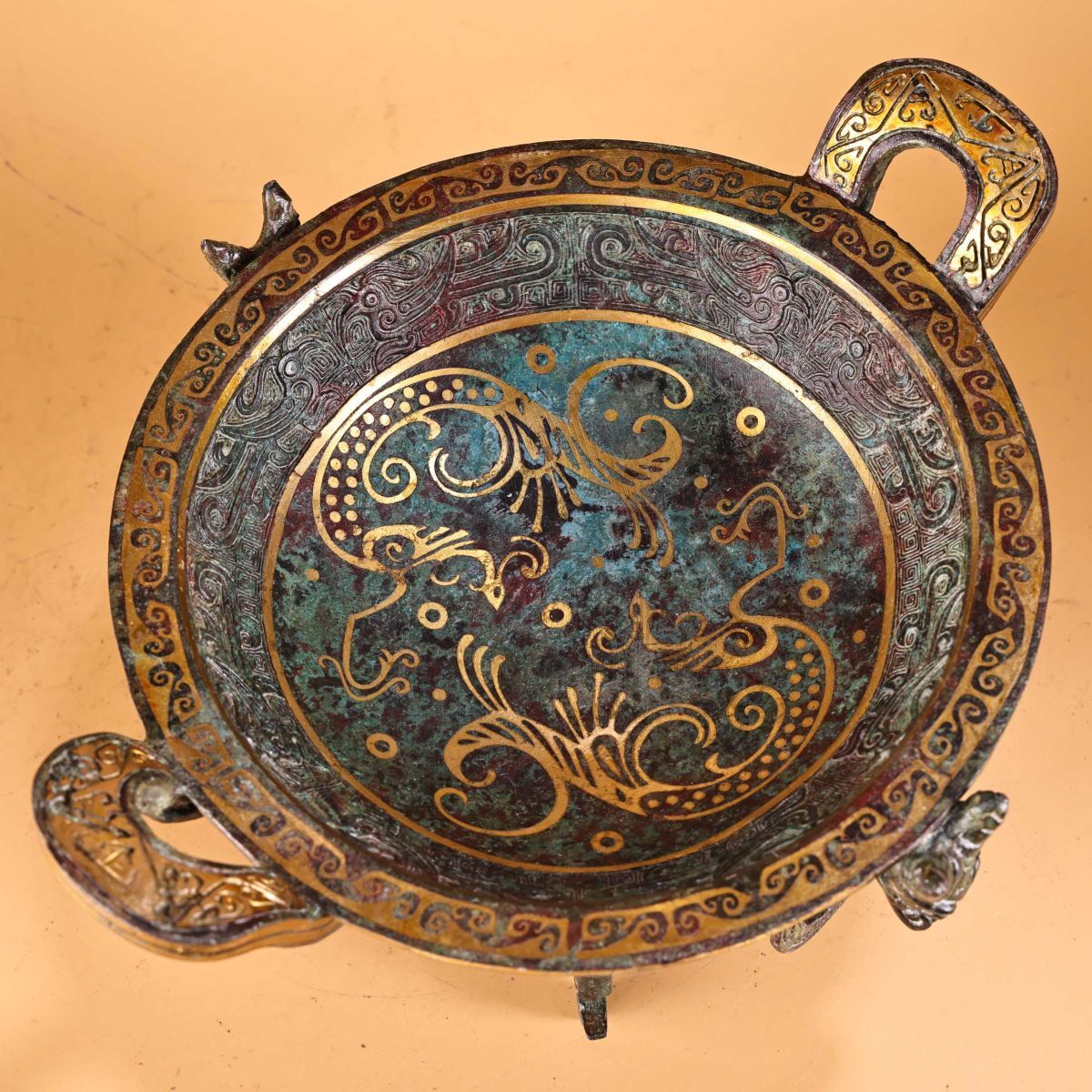 【永】漢代時期 青銅器 錯金錯銀 銘文三足盤 極細工 古銅彫 置物擺件 古美術品 時代物 古董品 収集 古美味 骨董品 旧家蔵出 中国唐物 A6