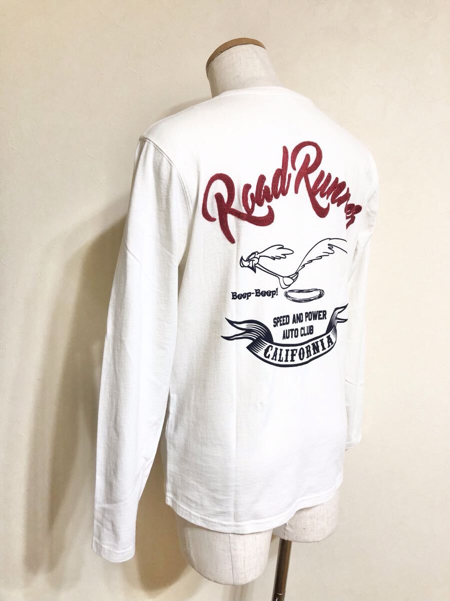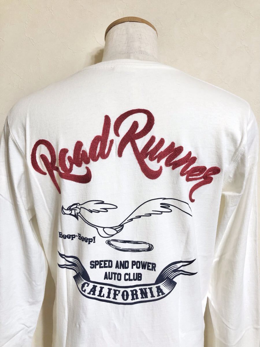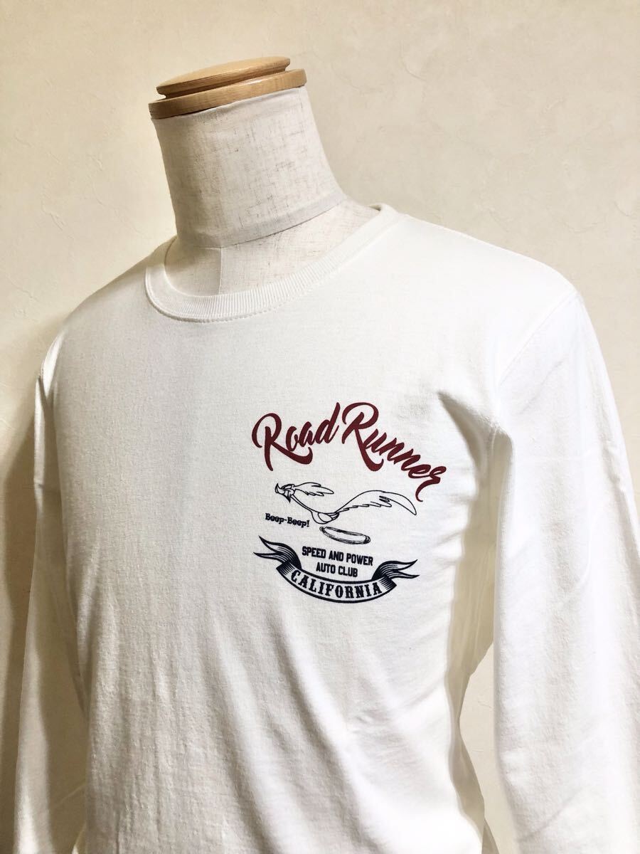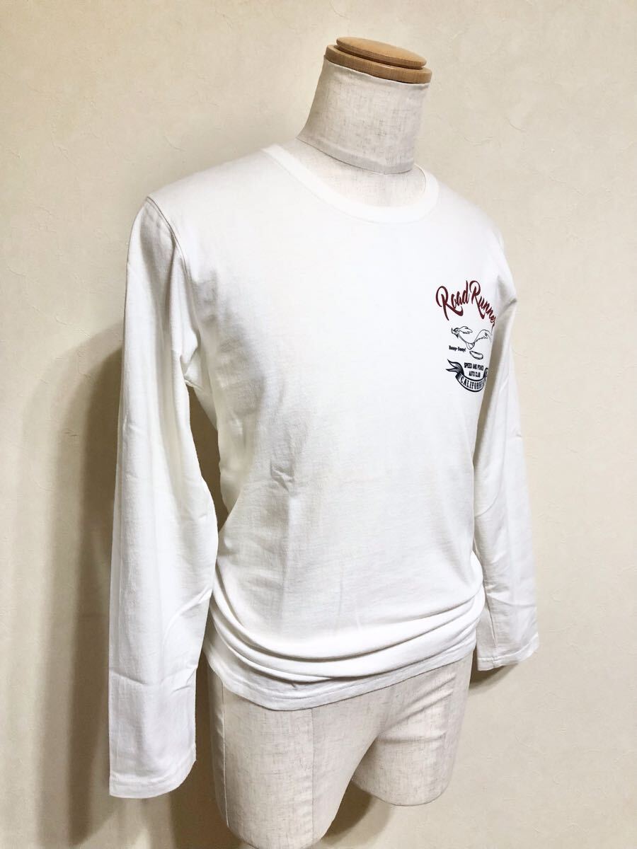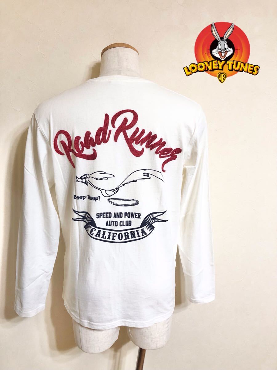 【品名】LOONEY TUNES ルーニー テューンズ ロードランナー ロンT チェーンステッチ 刺繍 アメカジ 古着 Tシャツ 長袖 サイズL オフホワイト