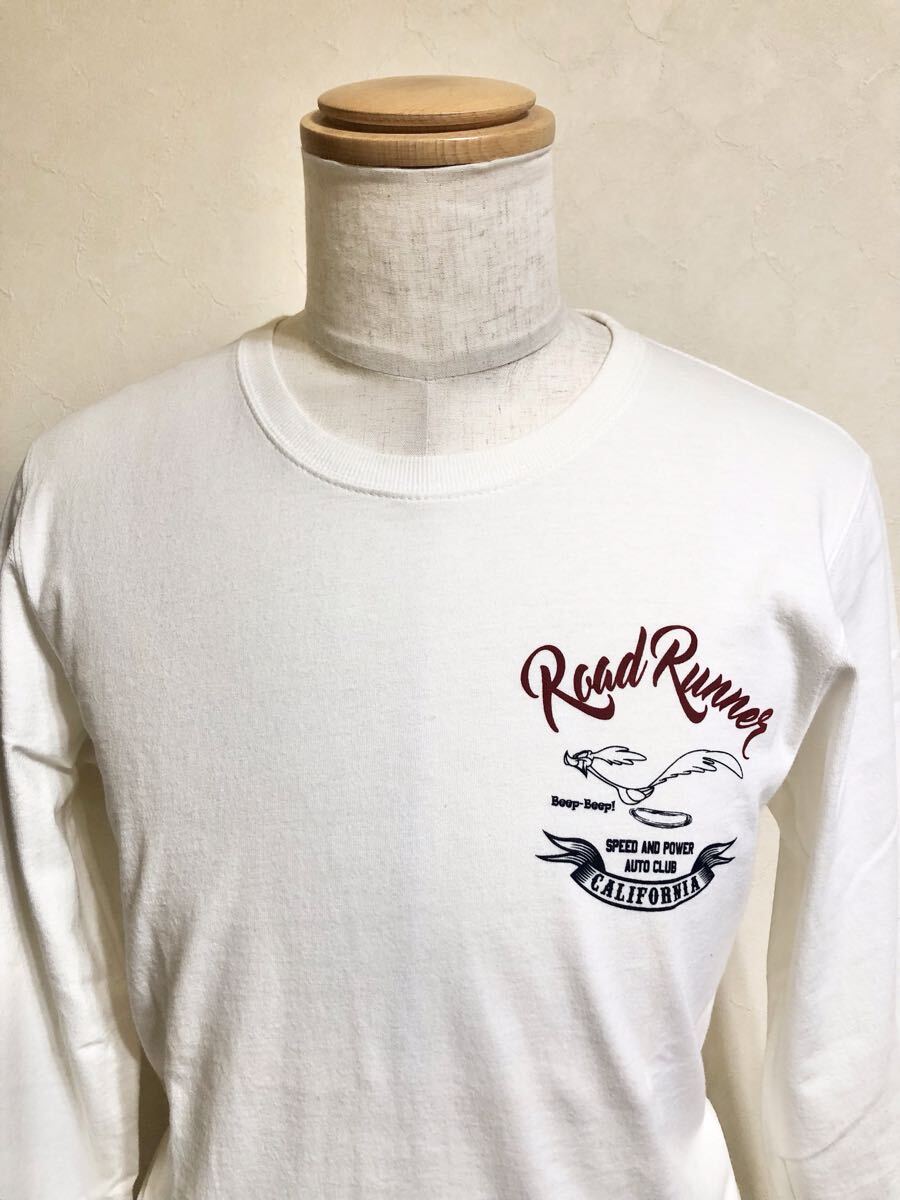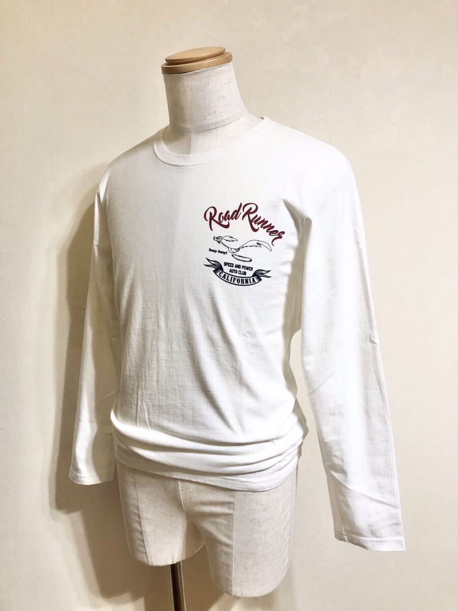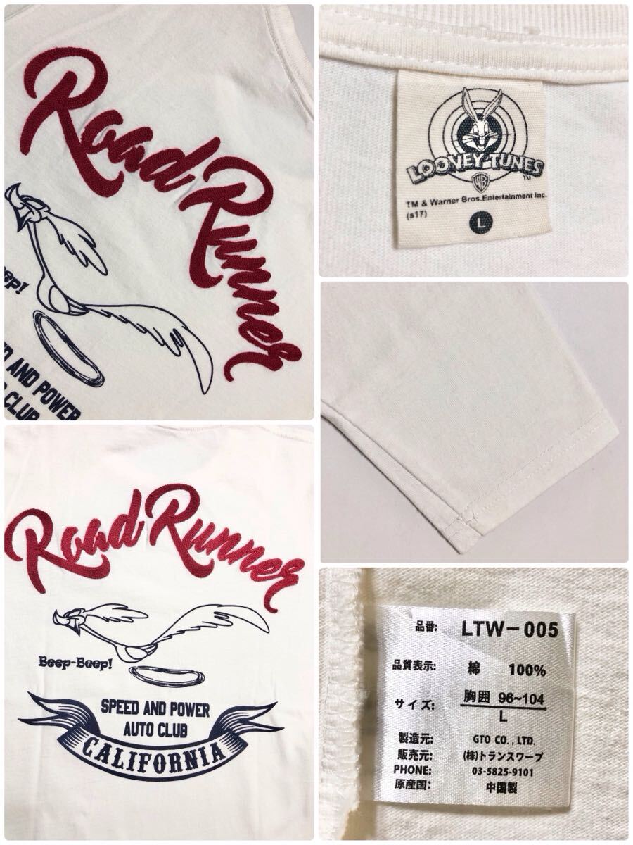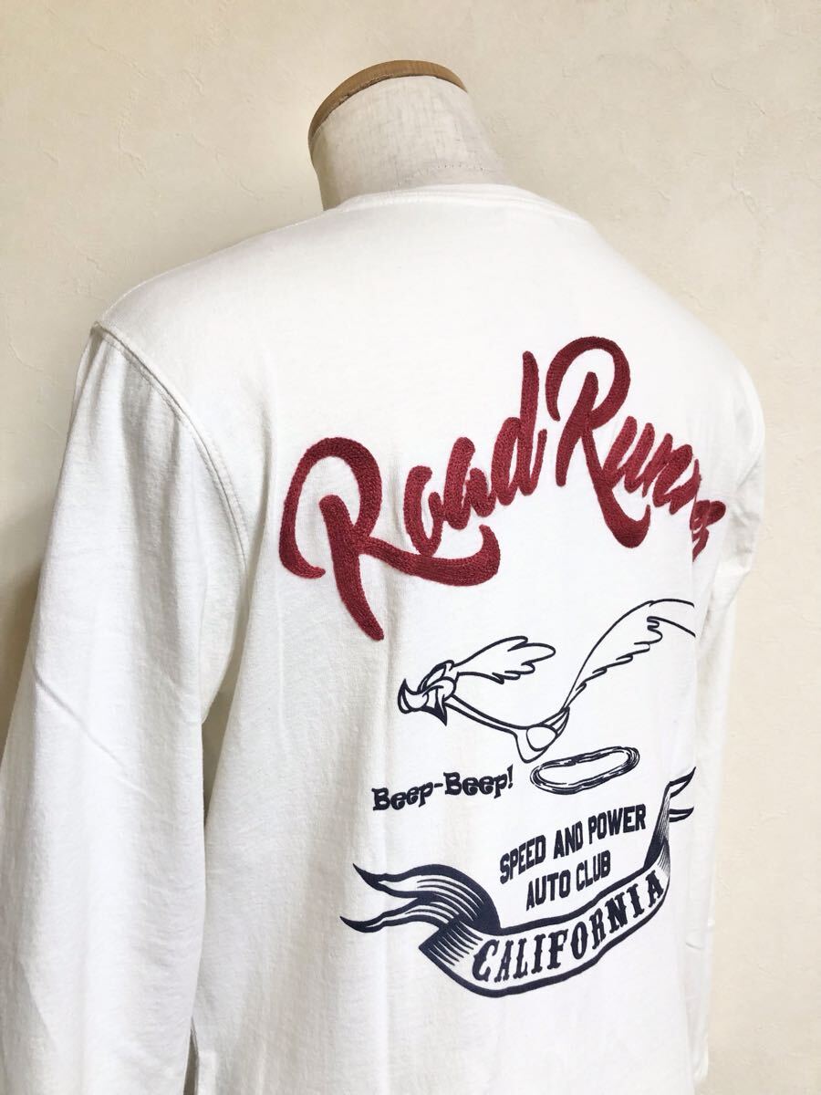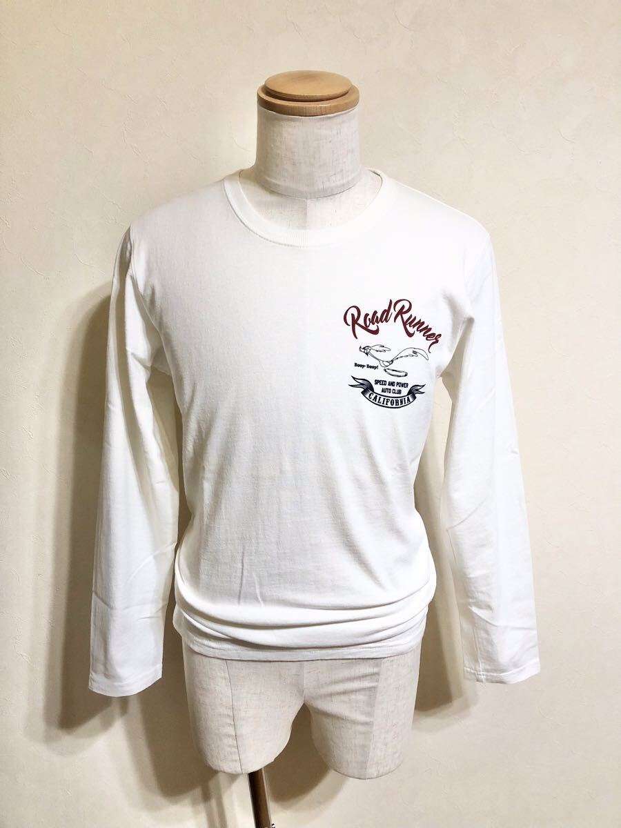 【品名】LOONEY TUNES ルーニー テューンズ ロードランナー ロンT チェーンステッチ 刺繍 アメカジ 古着 Tシャツ 長袖 サイズL オフホワイト