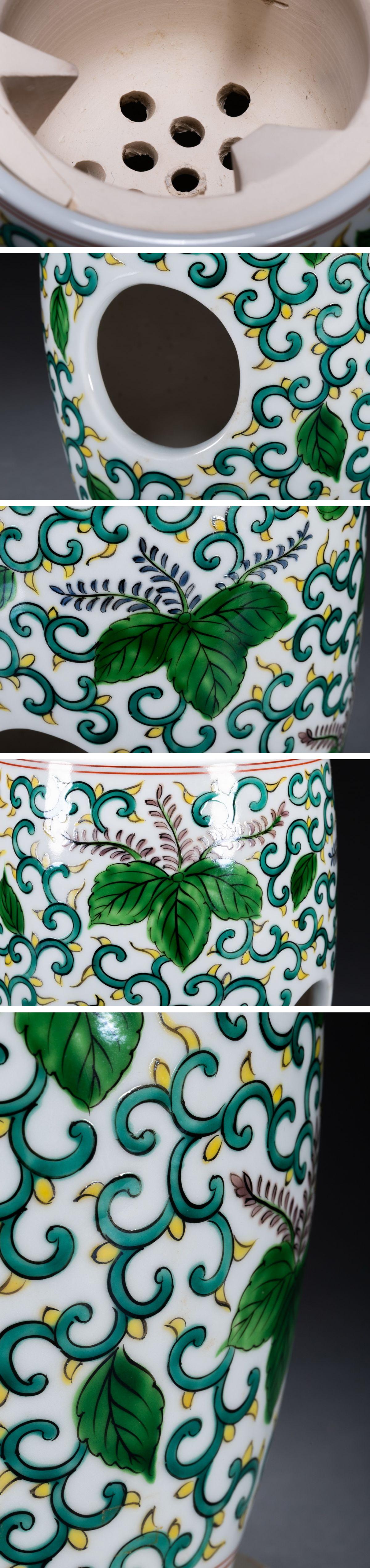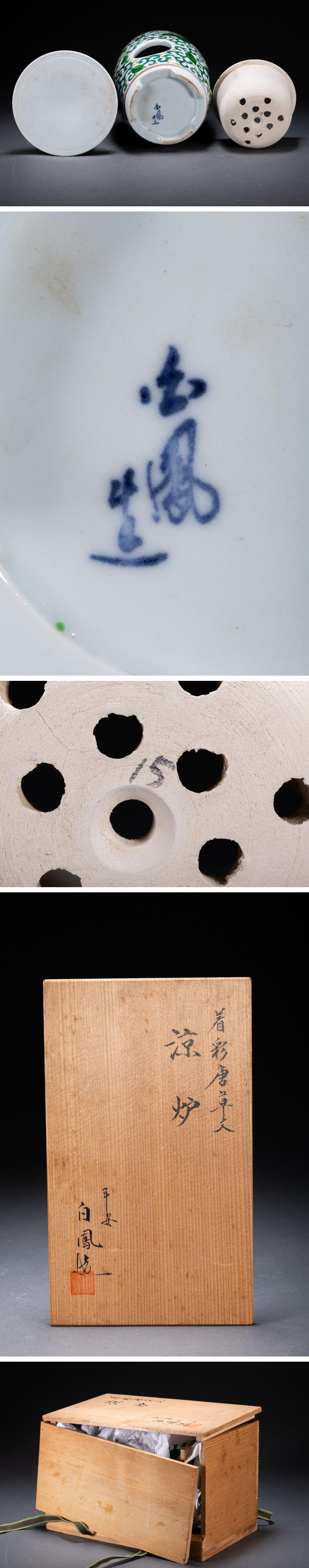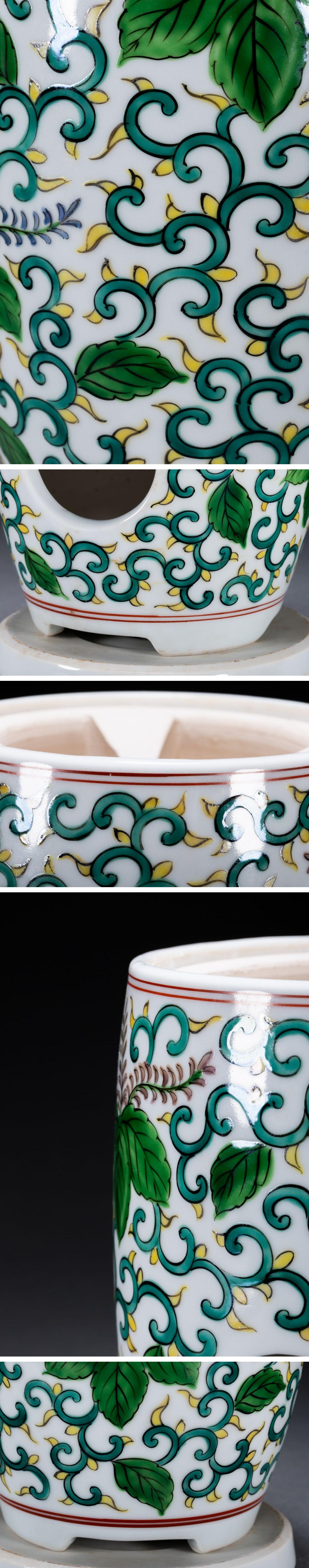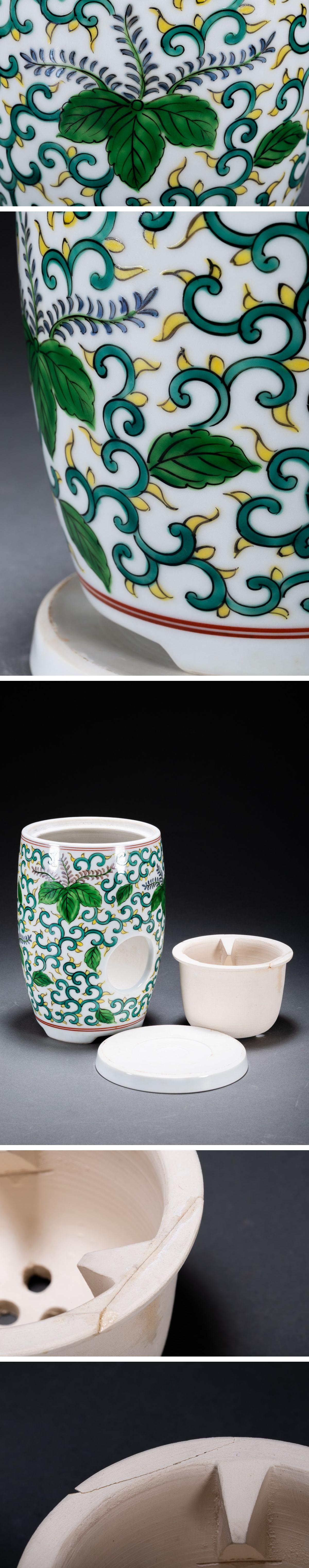 【清】某有名オークション購入 時代物 平安白鳳造 色絵唐草紋涼炉 傷あり 共箱 古置物 古擺件 古美術 時代コレクション7L10-11S2