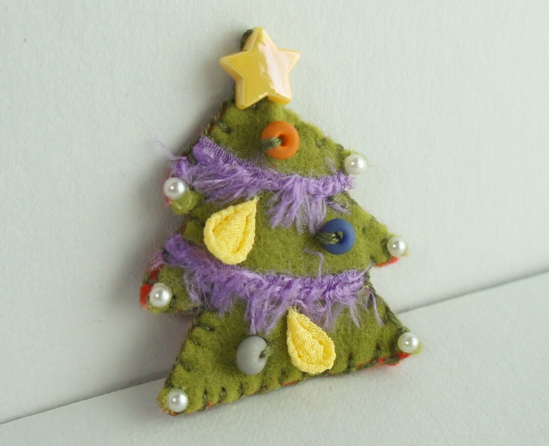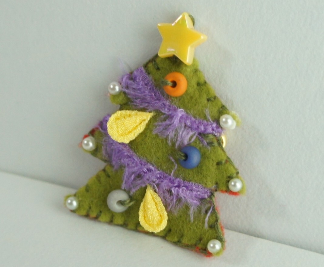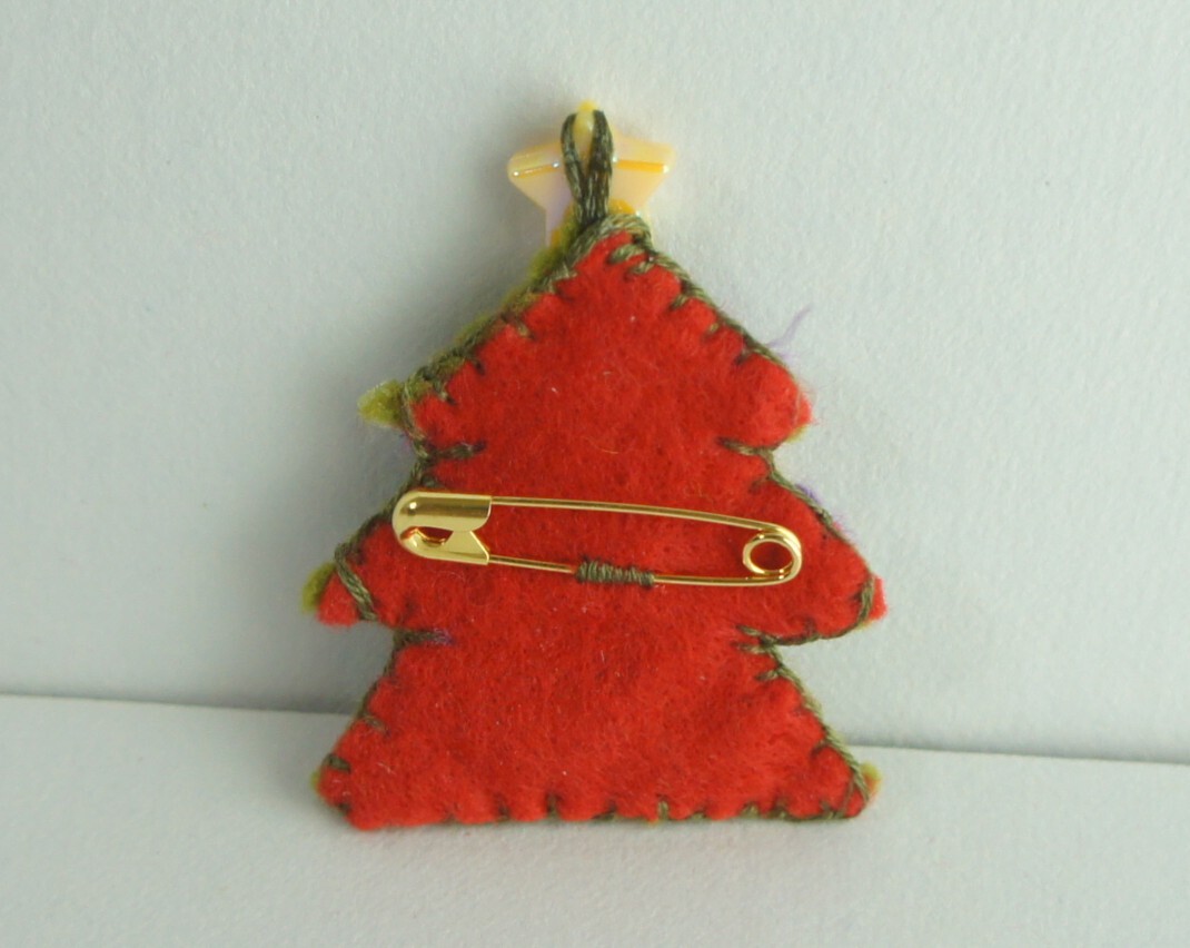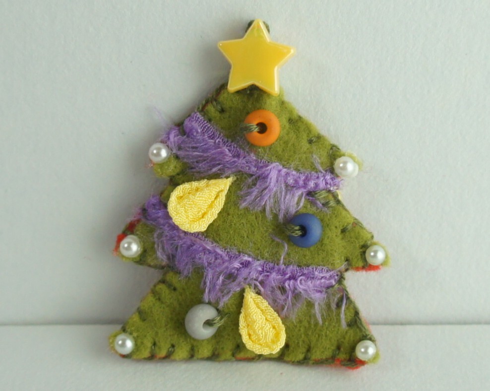 ハンドメイド  ブローチ  クリスマスツリー  フェルト ちりめん つまみ細工 ビーズ