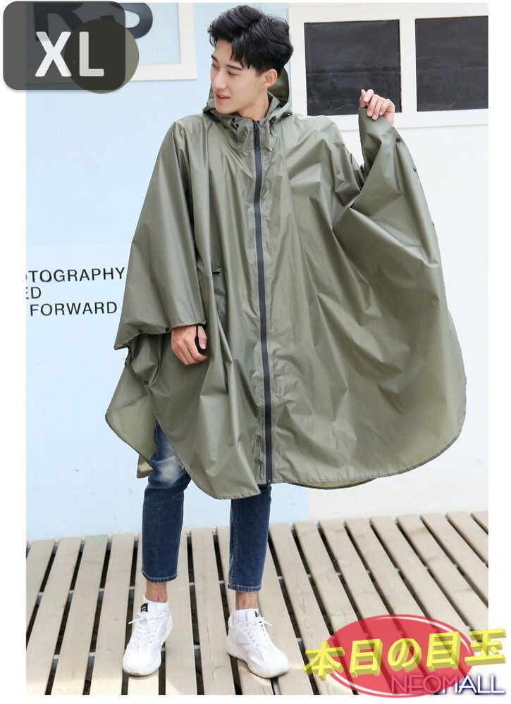1スタ ☆ メンズ レディーズ レインポンチョ 【537】 グリーン XLサイズ レインウェア 通勤 通学 レジャー 自転車 カッパ 合羽 雨具