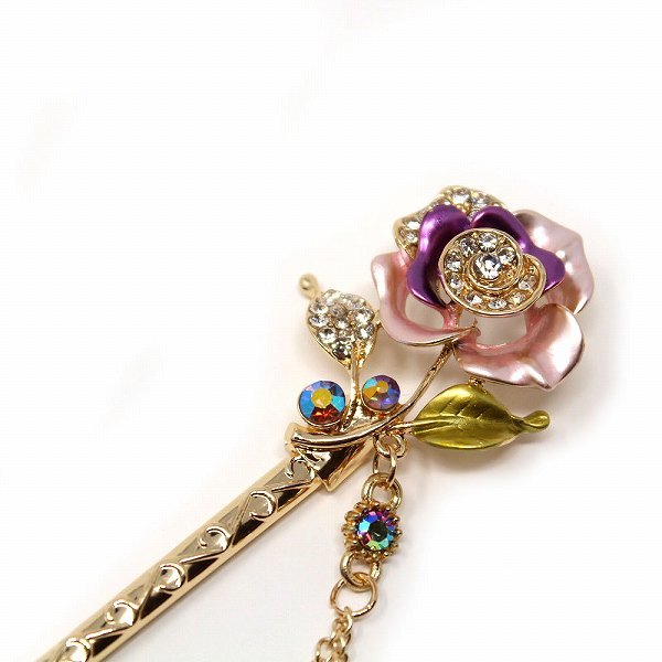 「bue-a2」 薔薇 花 かんざし アンティーク 簪 ヘアピン 髪飾り 和装 浴衣 振袖 成人式 卒業式 パープル