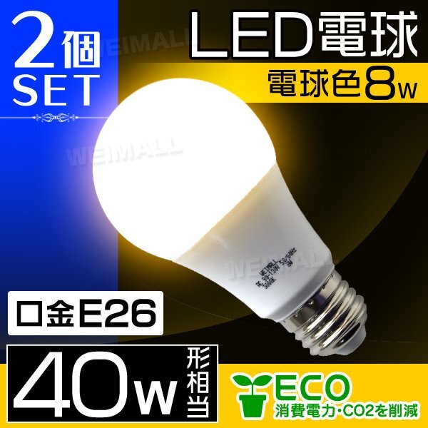 2個セット LED電球 E26 40W形 8W 電球色 電球 LEDライト LED電球 e26 LED 電球 照明 照明器具 led電球 ledランプ ledライト 保証付き |