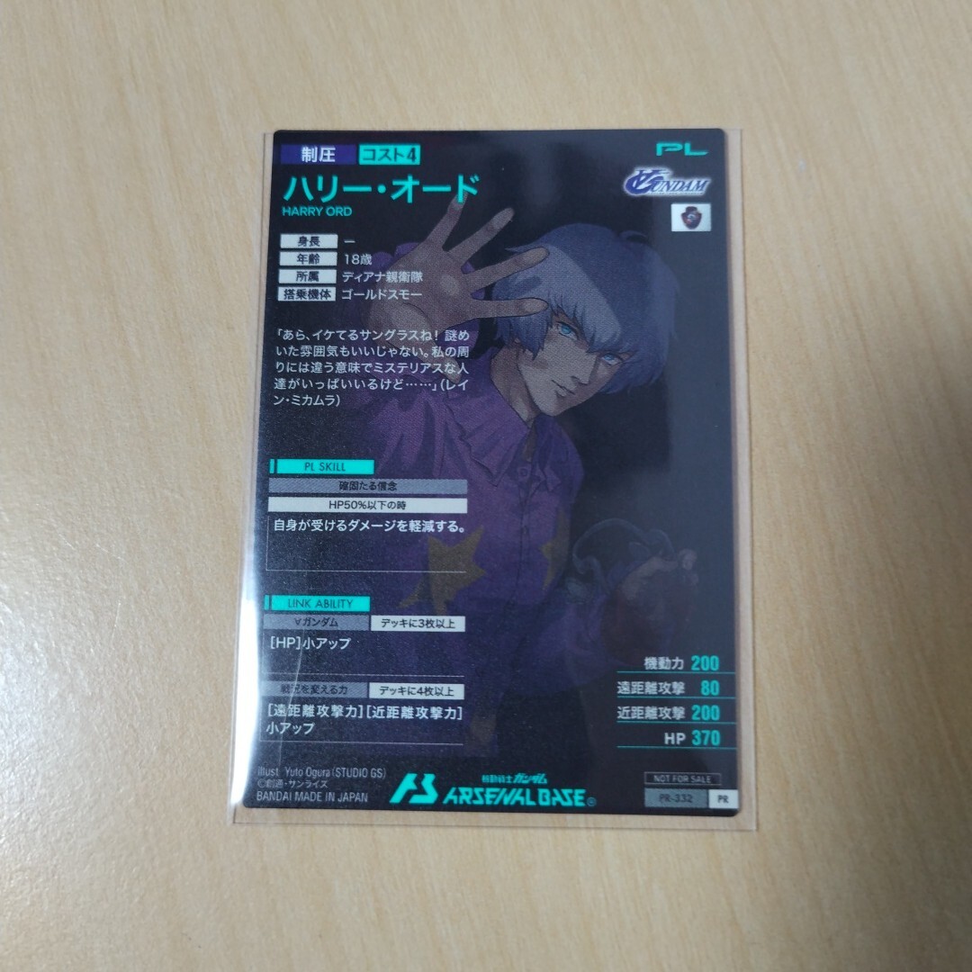 ガンダムアーセナルベース、プロモ、ハリー・オードの出品となります。未使用品です。パック開封後、スリーブに入れて保管していますが初期キズなど気になさる方はご遠慮ください。配送料金は梱包代込みで全国一律、120円とさせていただきます。他の出品との同梱は対応いたします。ノークレム、ノーリターンにてお願いいたします。