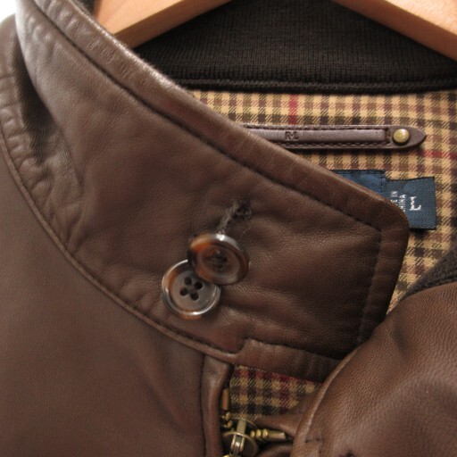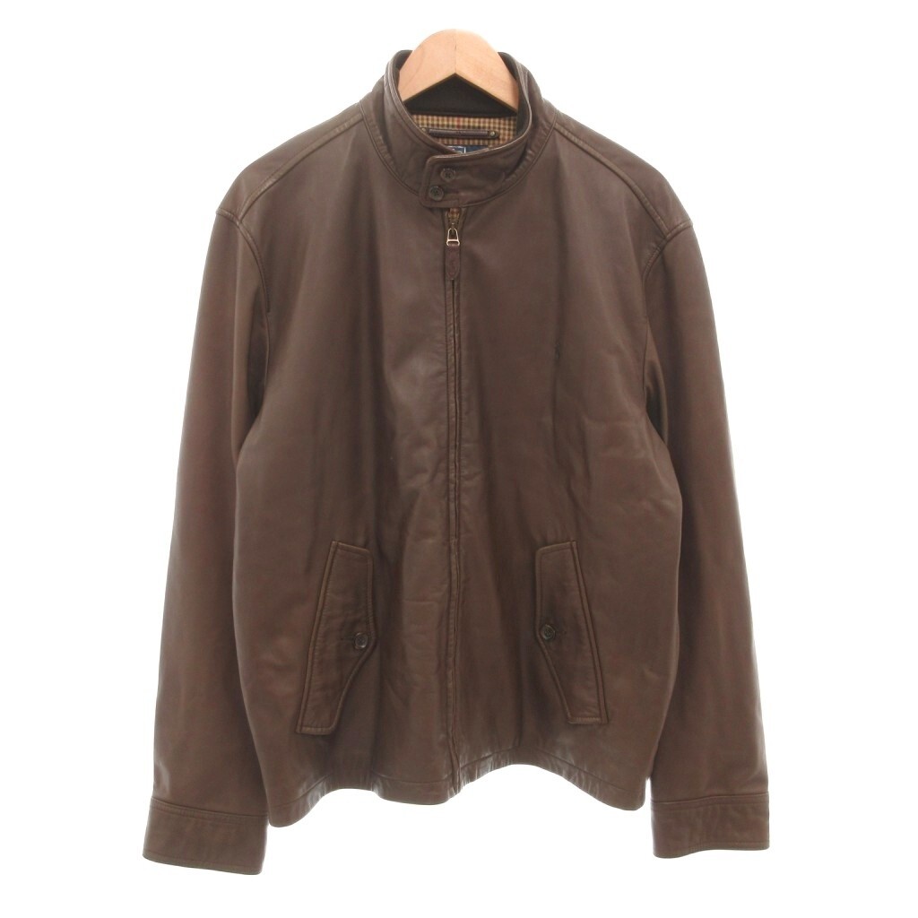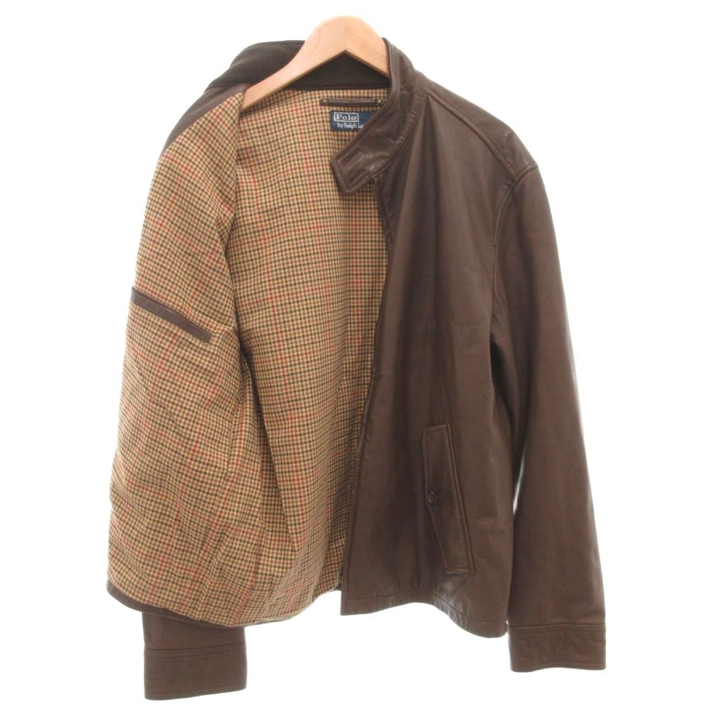 ポロ バイ ラルフローレン Polo by Ralph Lauren ライダースジャケット 革ジャン シングル ポロ刺繍 裏地チェック レザー L