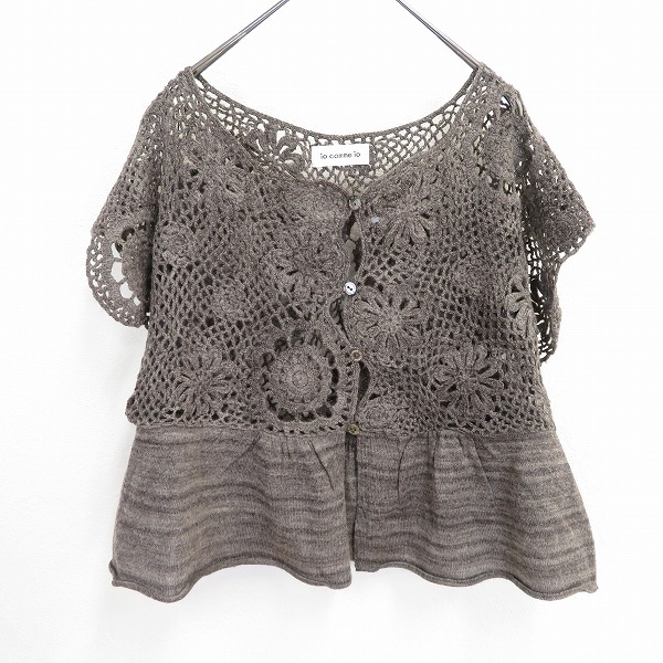 | 商品名 | #a イオコムイオ センソユニコ io comme io 半袖 カーディガン 40 茶系 ミックス かぎ編み 花モチーフ ウール アルパカ混 935365 k01 |