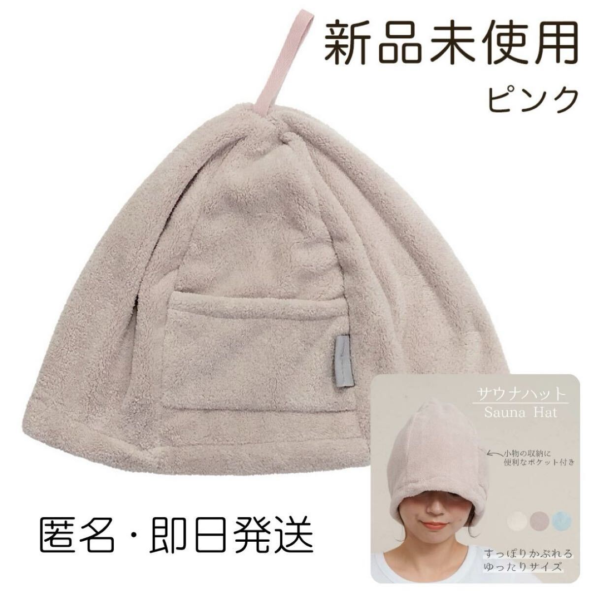匿名・即日発送 すっぽり被れる サウナハット タオル生地 高品質 無地 バス 整う ピンク シンプル