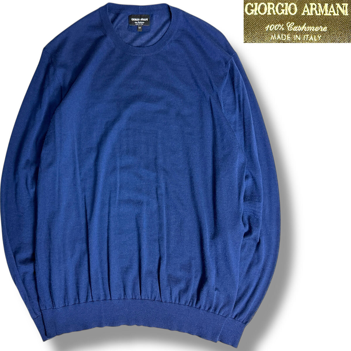 J6421 美品 大きいサイズ ジョルジオアルマーニ カシミヤ100%ニット ネイビーブルー 54 GIORGIO ARMANI