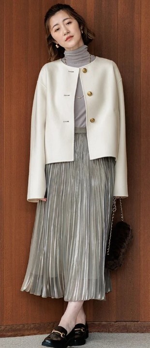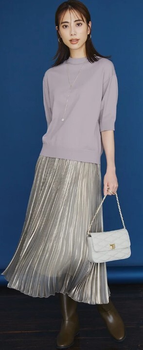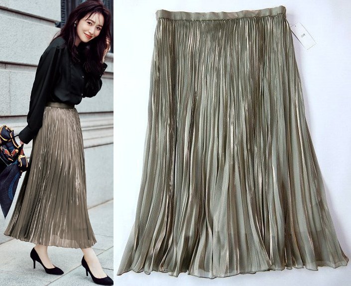 トレンドのシャイニー素材を上品に仕上げた、大人のプリーツスカート。