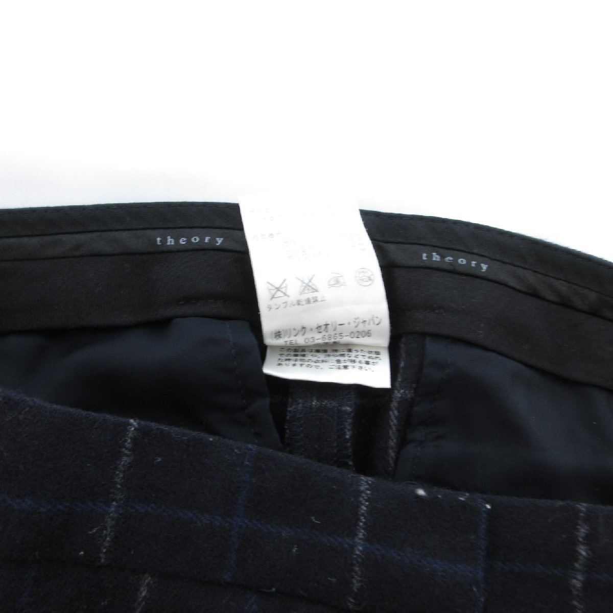 セオリー Theory パンツ スラックス チェック柄 カシミヤ混 2 紺 ネイビー /JS レディース