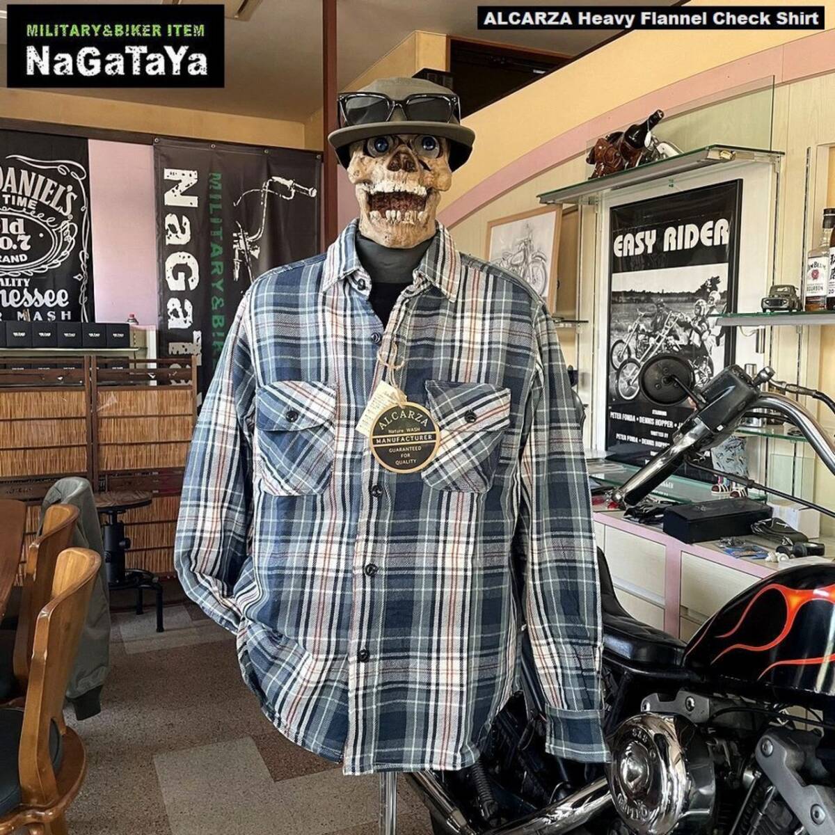 ALCARZA アルカーザ ヘビーネルチェック ワークシャツ タータンチェック柄 Lサイズ グレー 56 アメカジ バイカー ストリート