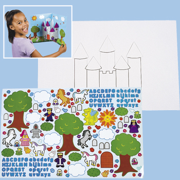 プリンセス、お城、白馬、王子、ドラゴン、お花、木などの