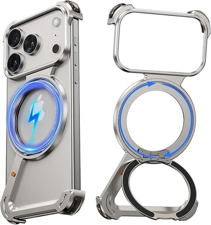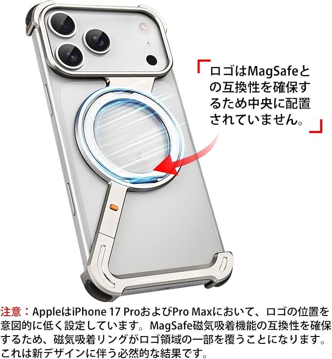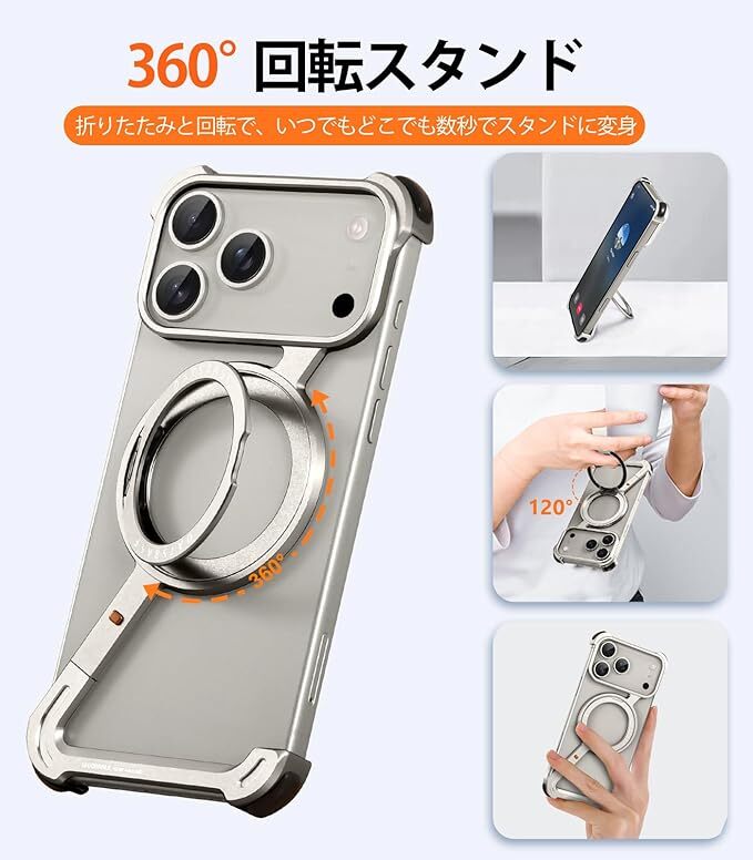 Amazon | NIFBANG iPhone 17 Promax用のバンパーケース メタルフレームレス リングマグネット搭載 アルミバンパー 金属 いphone 17 Promax ケース 角度調整スタンド 縦横両対応 落下防止 米軍規格 耐衝撃 レンズ保護 四隅エアバッグ ミニマリスト薄型アイフォン 17 プロマックス用のカバー グリップ感 持ちやすい かっこいい シルバー