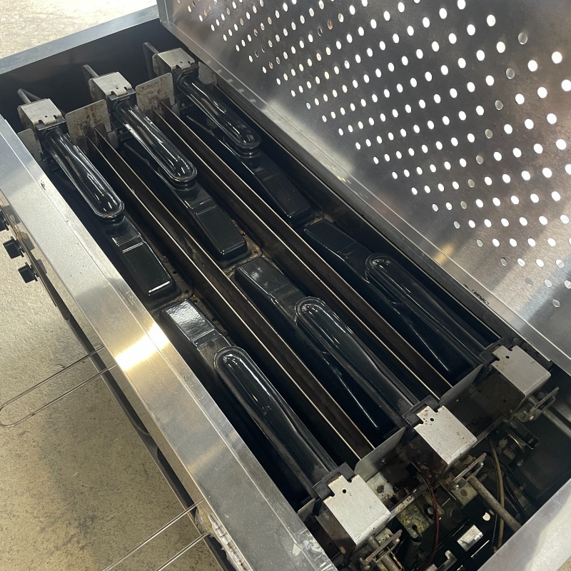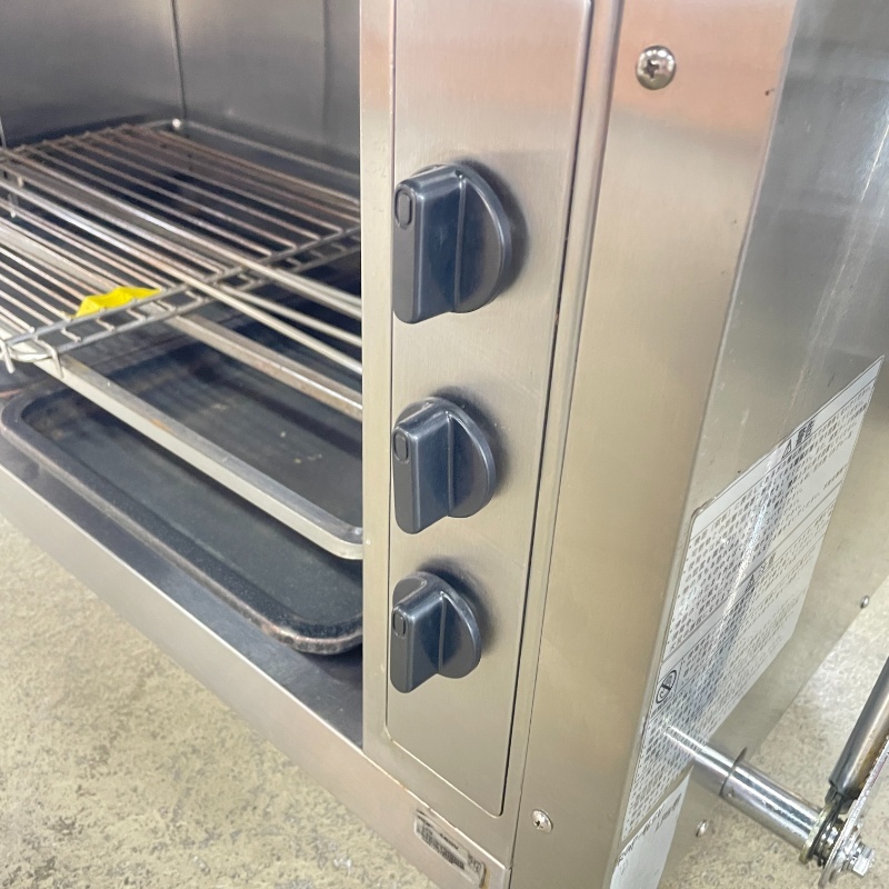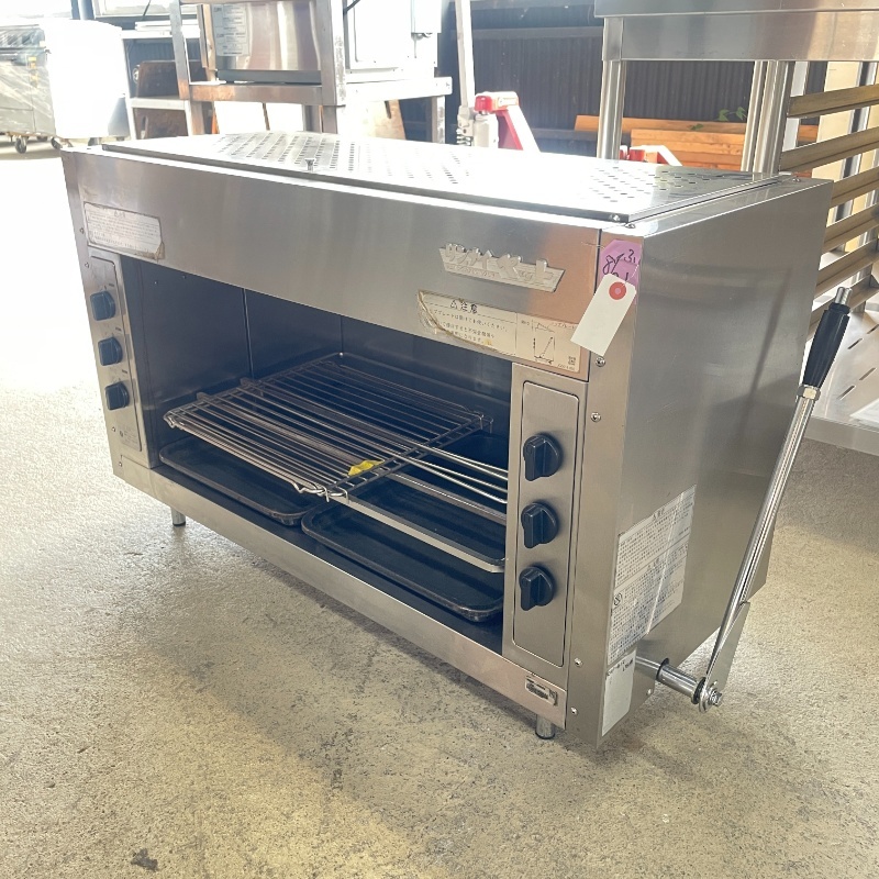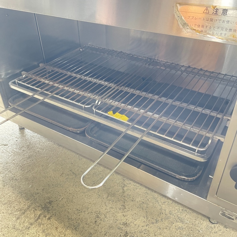 | 特記事項 | ・上火式 ・付属品:焼網 2枚、遮熱板 1枚、テッキュウ 2本、水入れ皿 2枚 ※遮熱版の爪が破損しています ※右点火コックパネルの表示が消えています ※使用によるキズ、スレ、汚れ、サビあり |