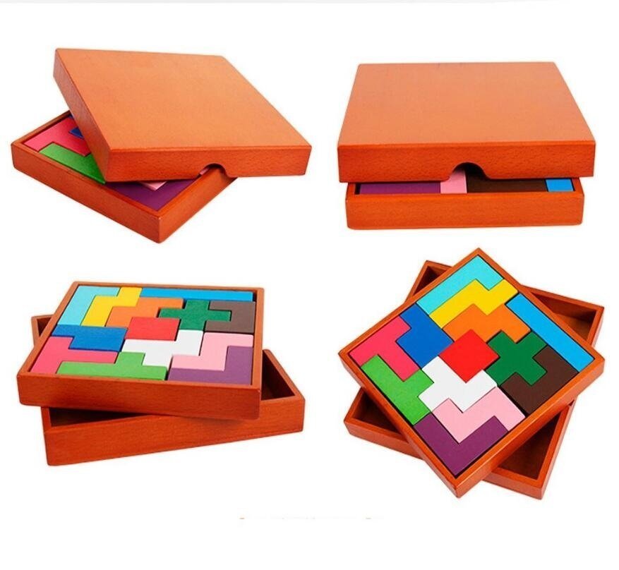 ◆木製パズル 木のおもちゃ 知育 大人も楽しめる 木箱付き 脳トレ コンパクト 知育玩具 暇つぶし 高齢者のボケ防止に 大人も子供も 木製パズル13点セット BBLO13S/カラフル