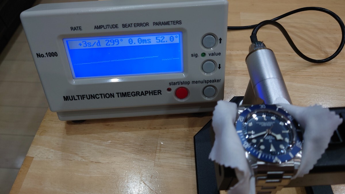 精度は測定機で平置き+3秒 6時上±0秒 9時上±0秒です。