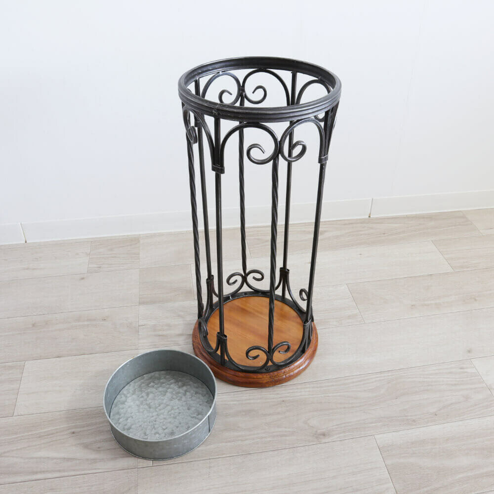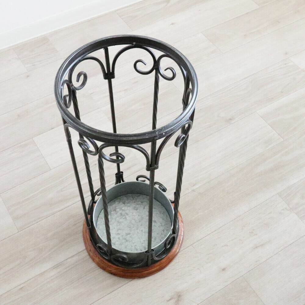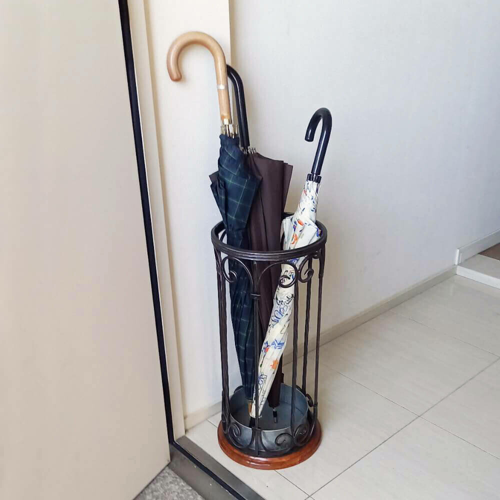アンティーク調のとても高級感のあるアイアン製傘立てです。 作りもしっかりしておりとても安定感があります♪ 雨皿は取り外し可能、傘から垂れる水も捨てやすいのでとても便利♪ 傘も10本程度入りますので大家族、またはお店でも使用可! お家に来られたお客様、ご友人様の目を引くこと間違いなし!玄関にお一ついかがですか? |